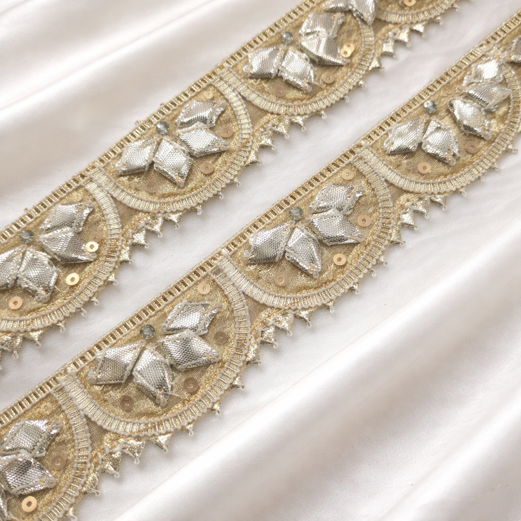 Enhance your projects with our Light Gold Cutdana Embellished Handcrafted Trim. This exquisite trim features...