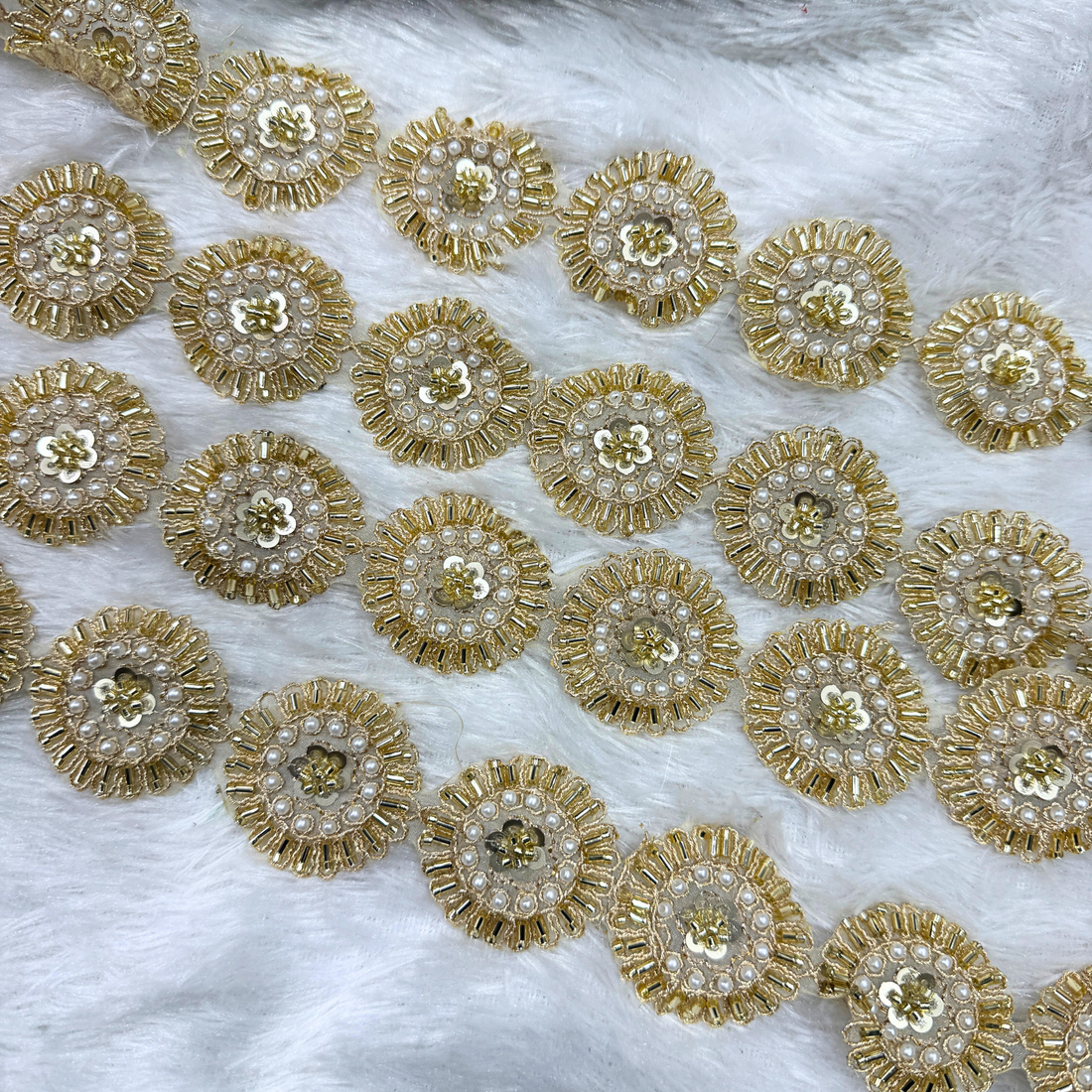 Luxury Pearl & Sequin Round Lace Motif Trim
