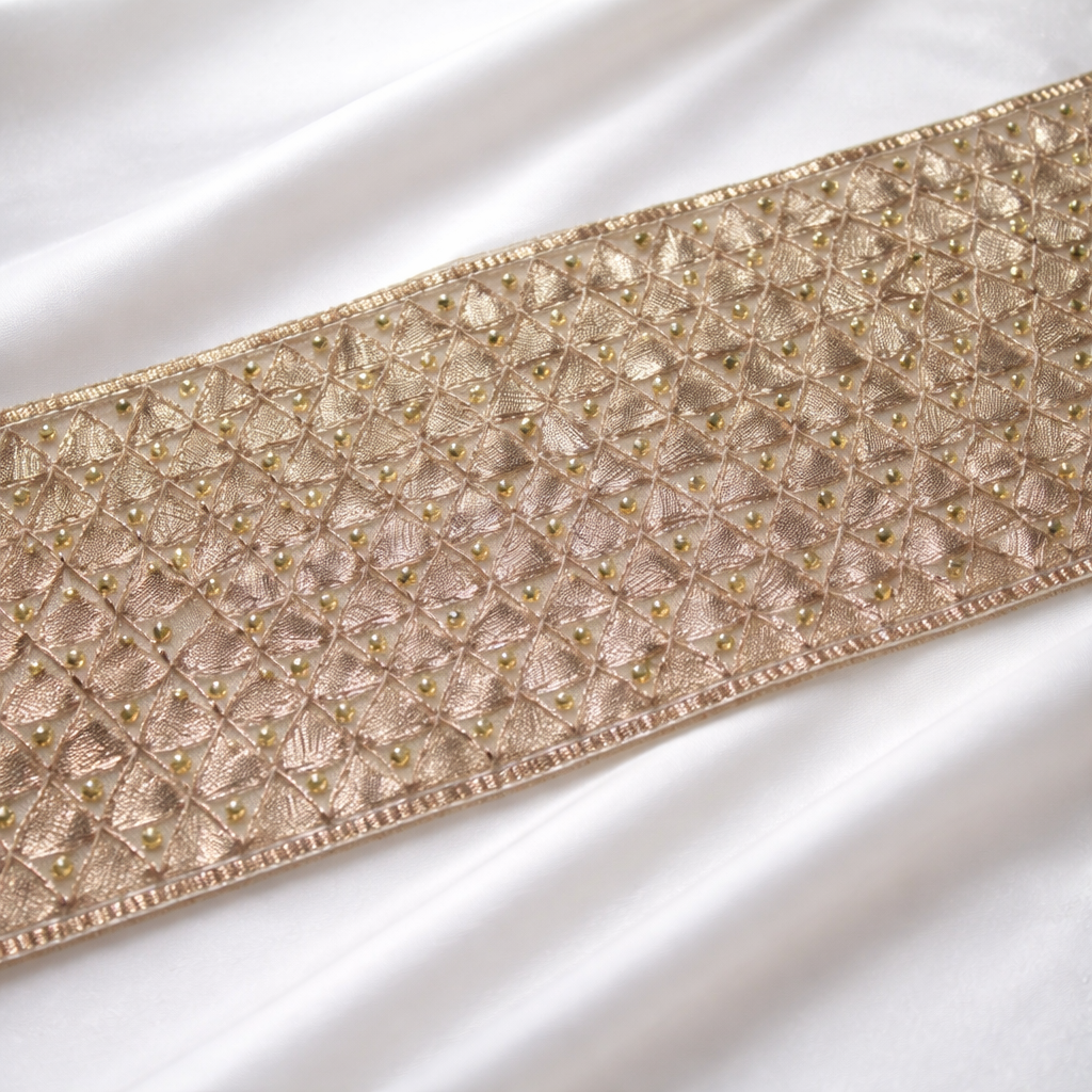 Elegant cutdana lace trim designed to add a refined finish to sarees, blouses, lehengas, gowns,...