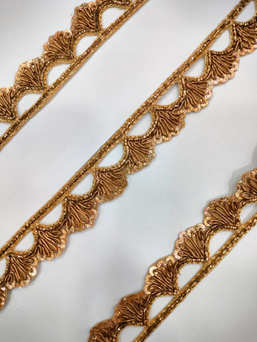 Gold Shimmer Floral Embroidered Handwork Lace Border