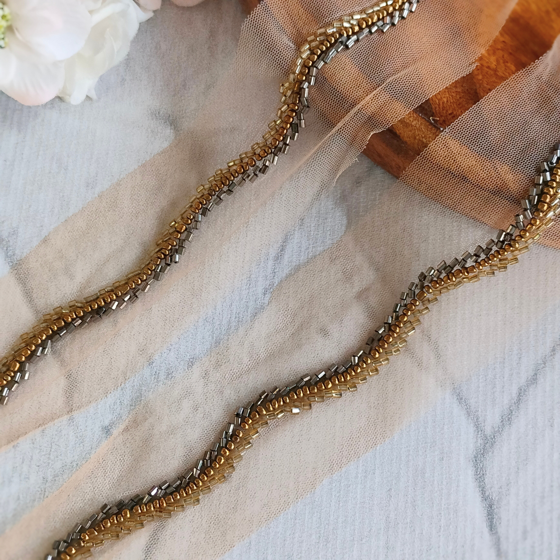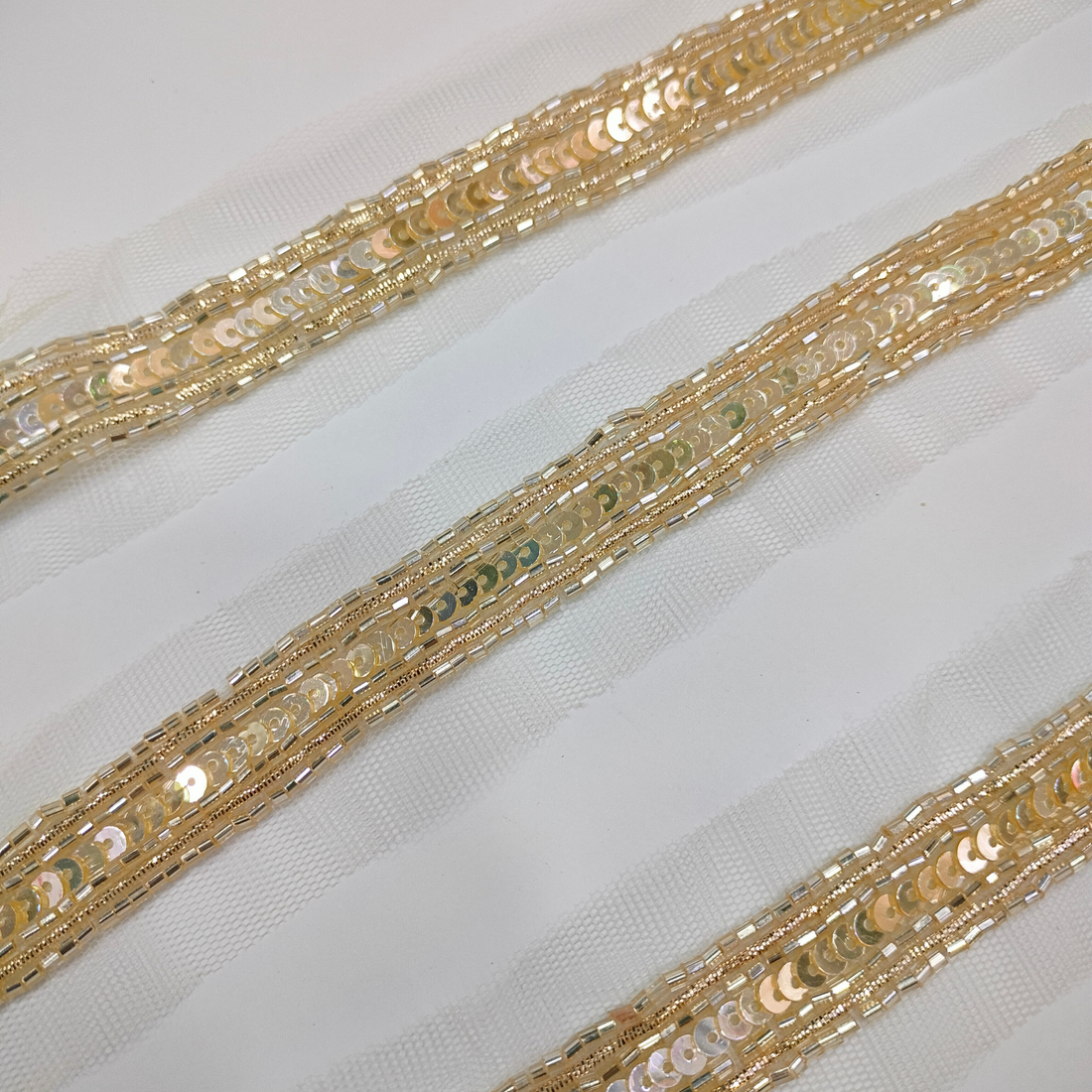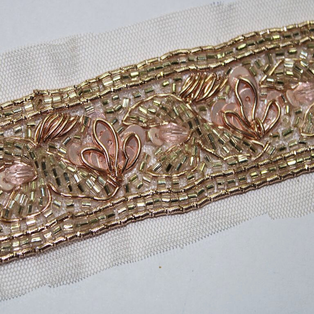 One of the most loved types of trims is handcrafted trims—made with skill, tradition, and passion. These are not just any trims. They are carefully crafted by artisans who pour years of expertise into their work. Zari handwork trims, for example, are crafted using gold or silver threads to create intricate, shimmering patterns that are simply mesmerizing. Other handcrafted trims might include mirror work, embroidery, or even delicate beadwork, each made by hand to ensure precision and uniqueness.