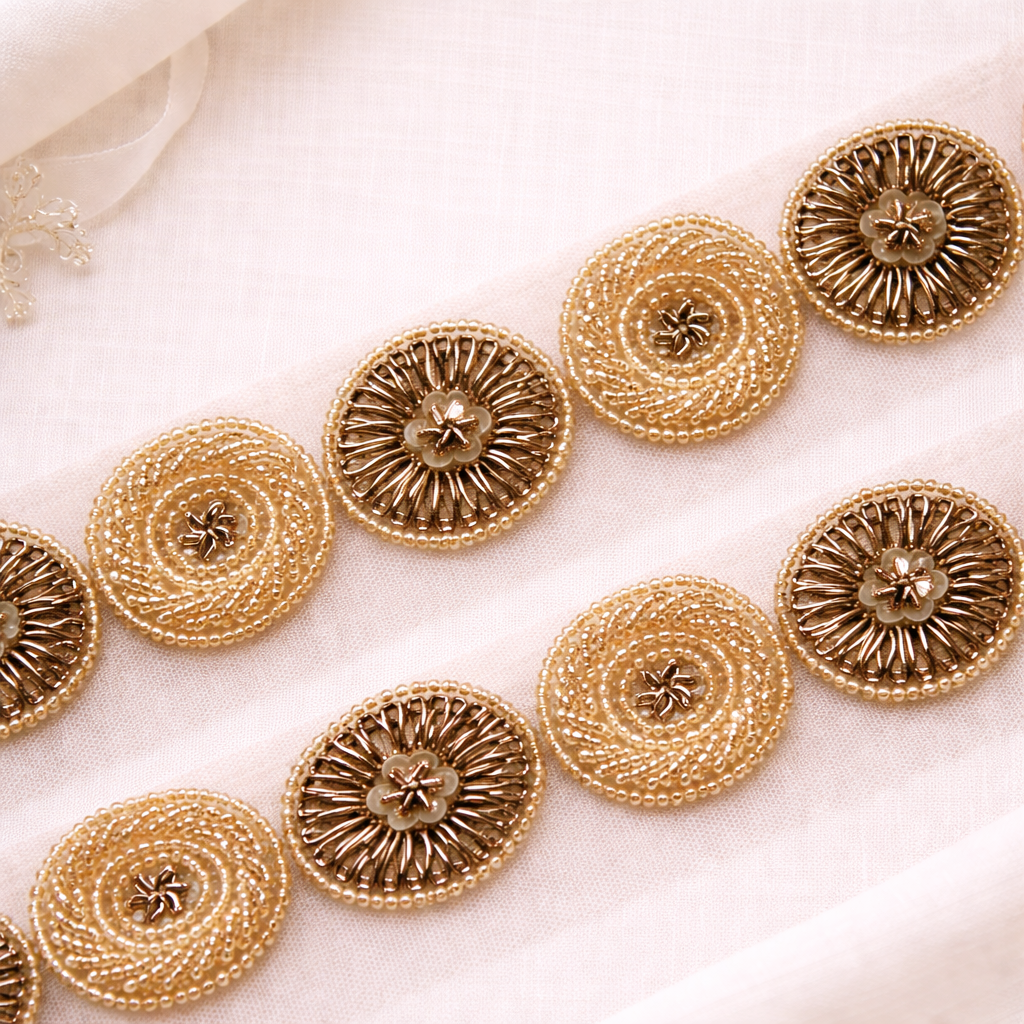 In India, handcrafted trims became highly popular in the fashion world as designers sought to bring traditional craftsmanship back into contemporary clothing. Zari, which has been used in Indian textiles for centuries, adds an element of luxury and tradition that is still in demand today. Whether it's a festive saree, a wedding lehenga, or a designer kurta, zari handwork trims continue to be a favorite choice, adding an unmatched level of elegance and class.