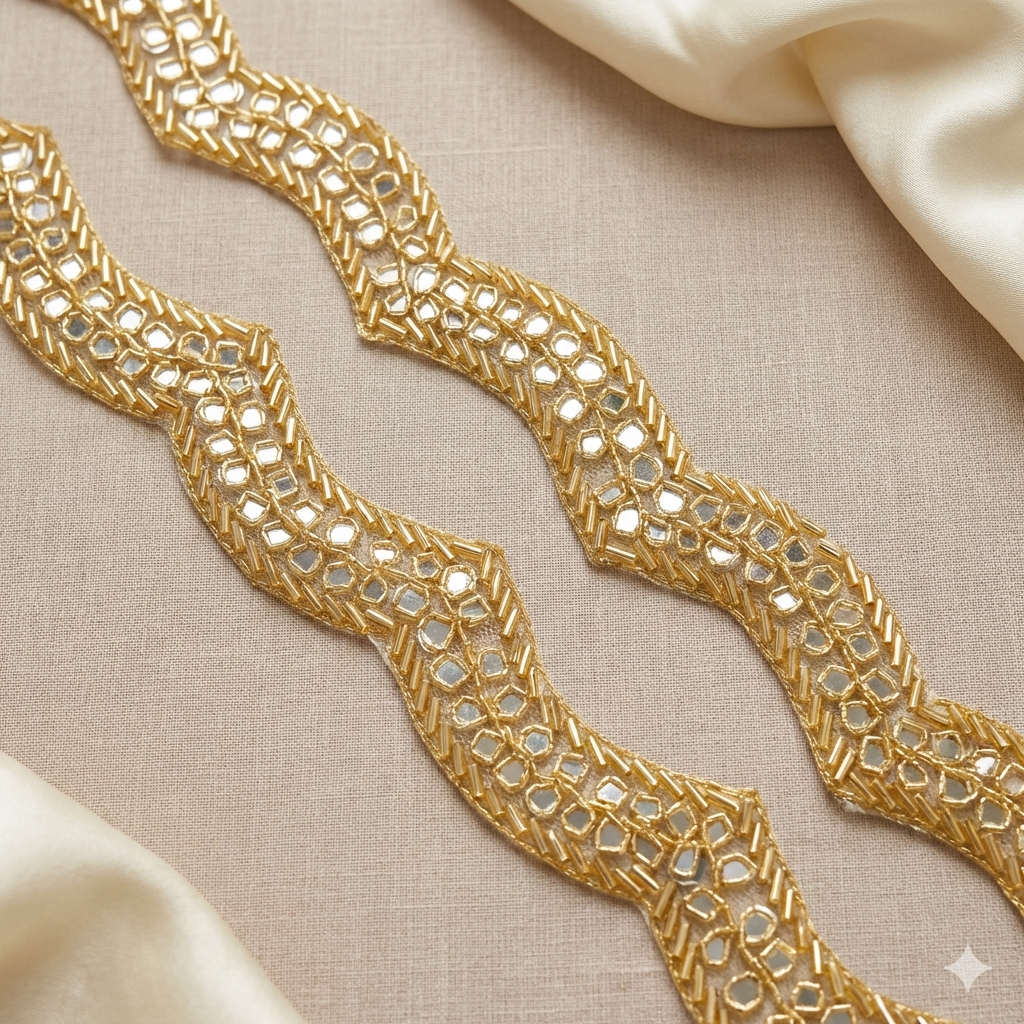 Golden Scalloped Mirror Embellished Handcrafted Trim