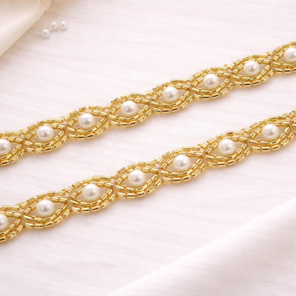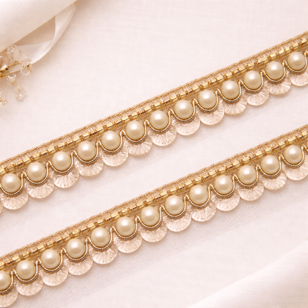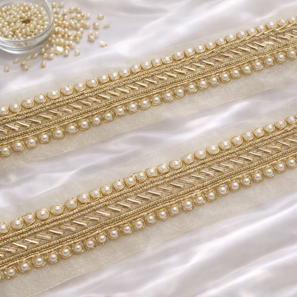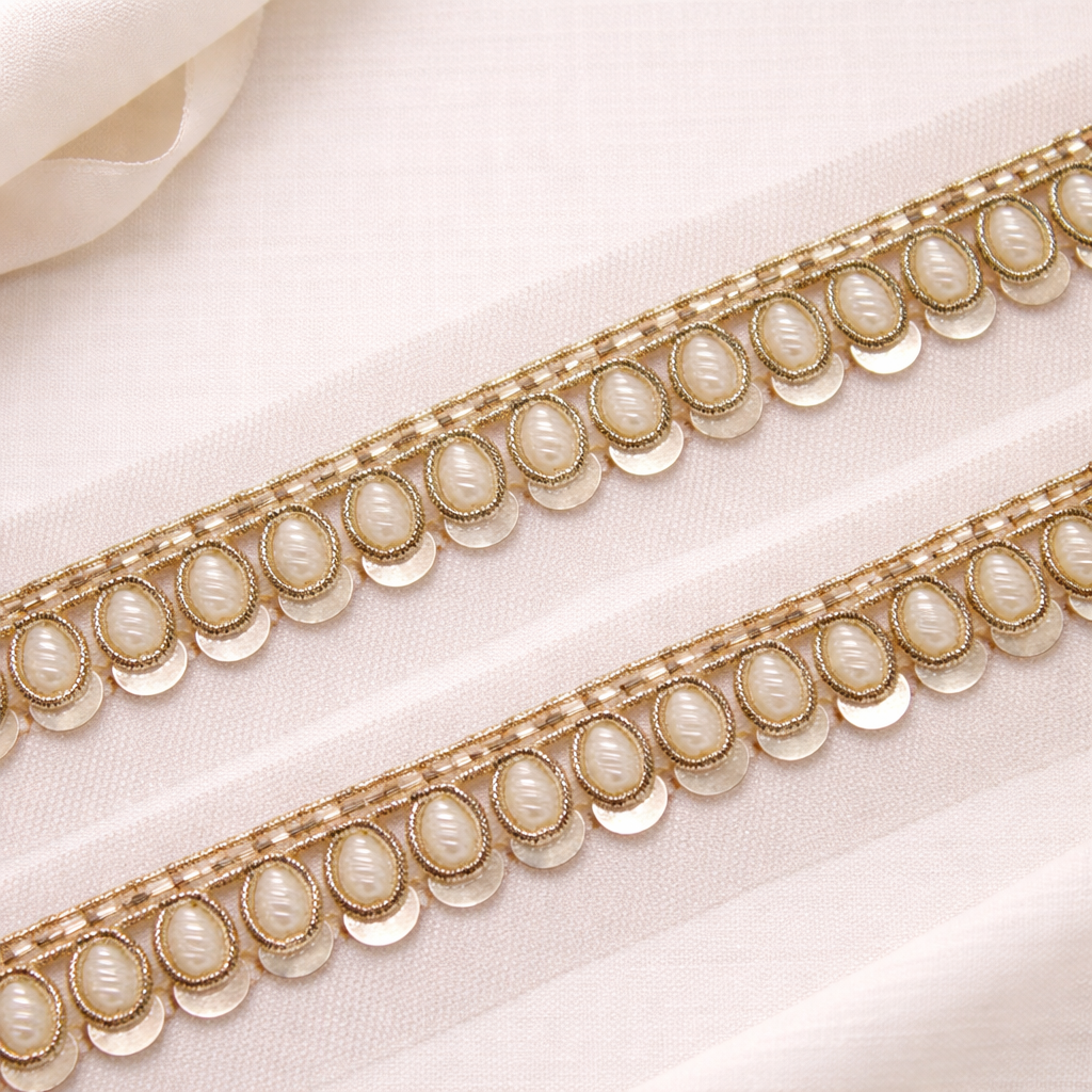 Light Gold Pearl Embellished Handcrafted Trim