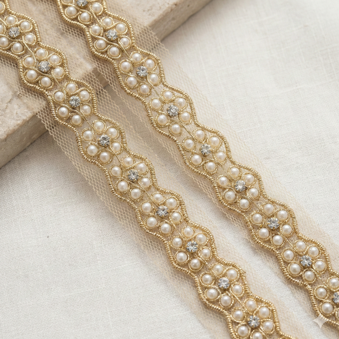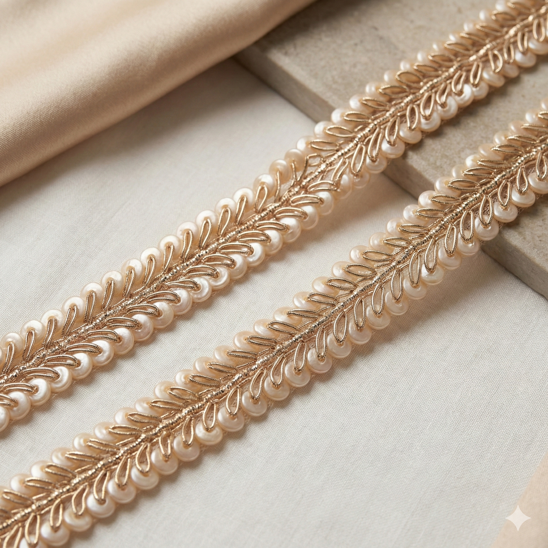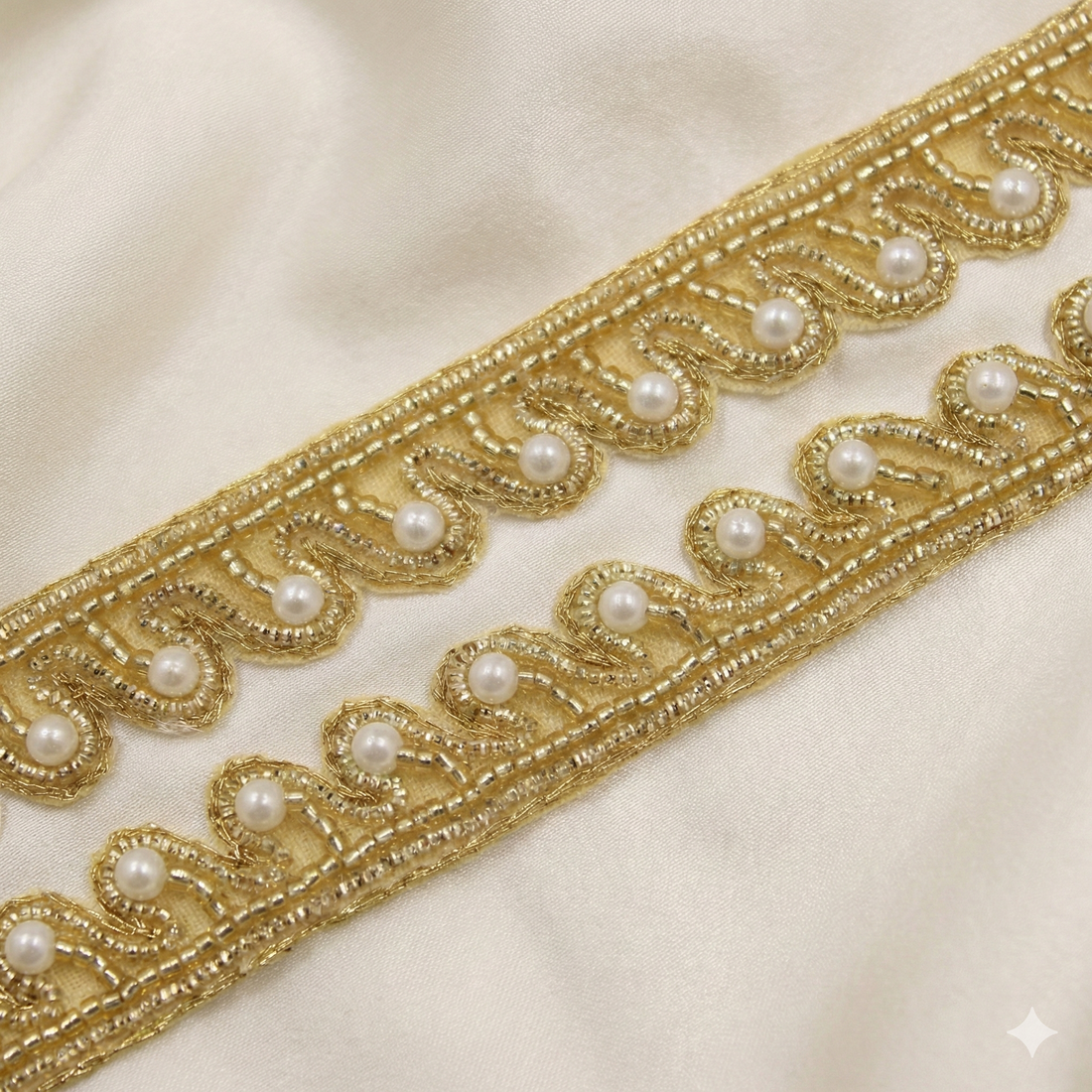 Light Gold Pearl Embellished Handcrafted Trim