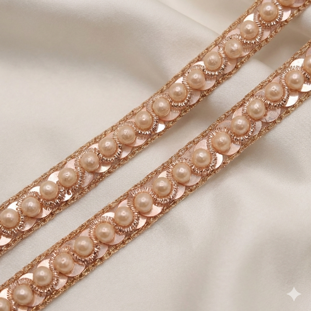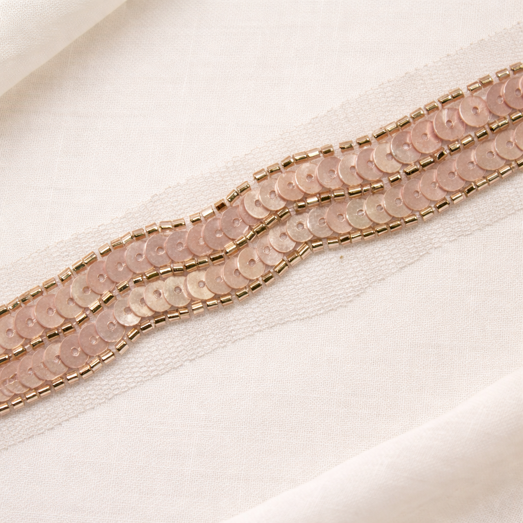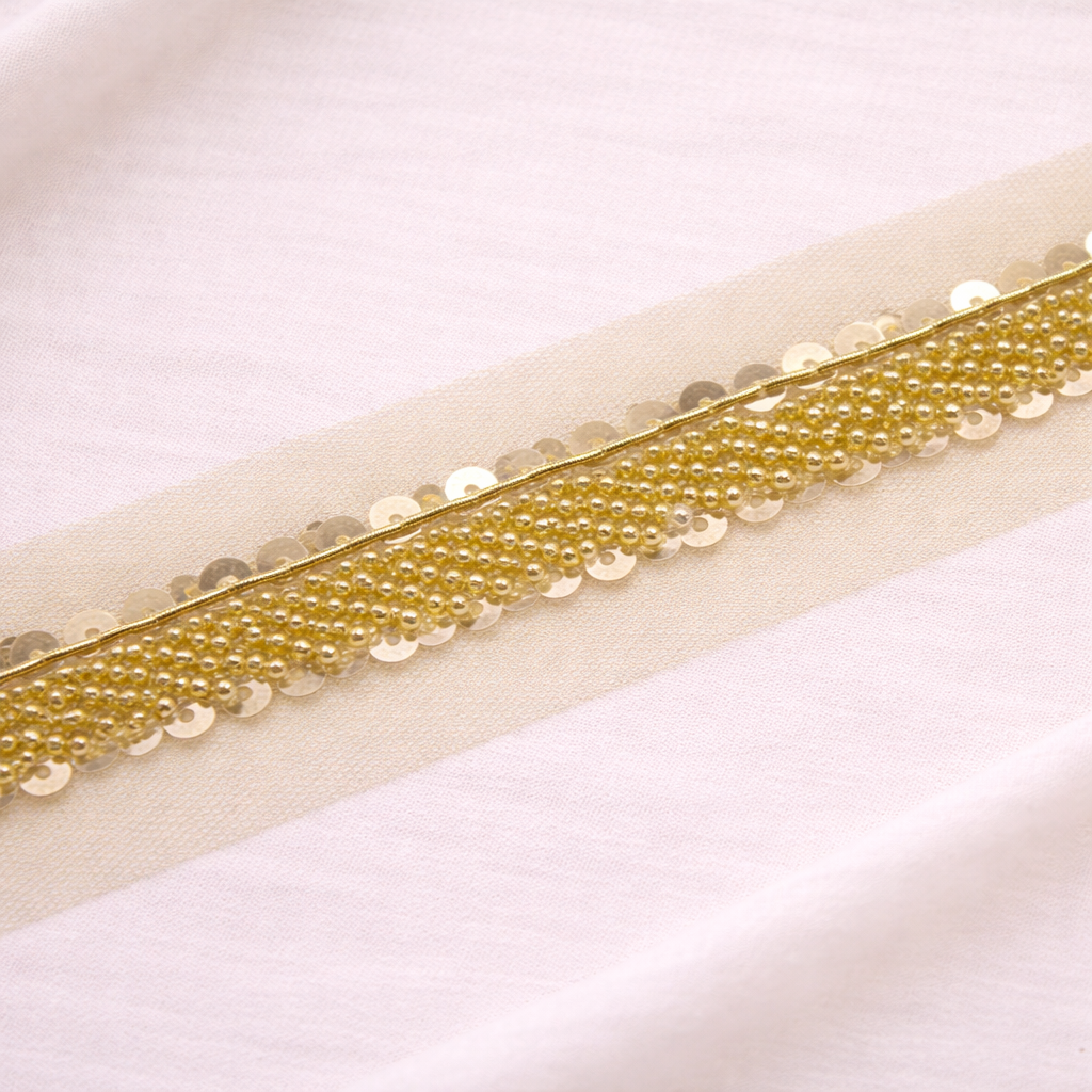 Light Gold Sequin & Pearl Embellished Handcrafted Trim