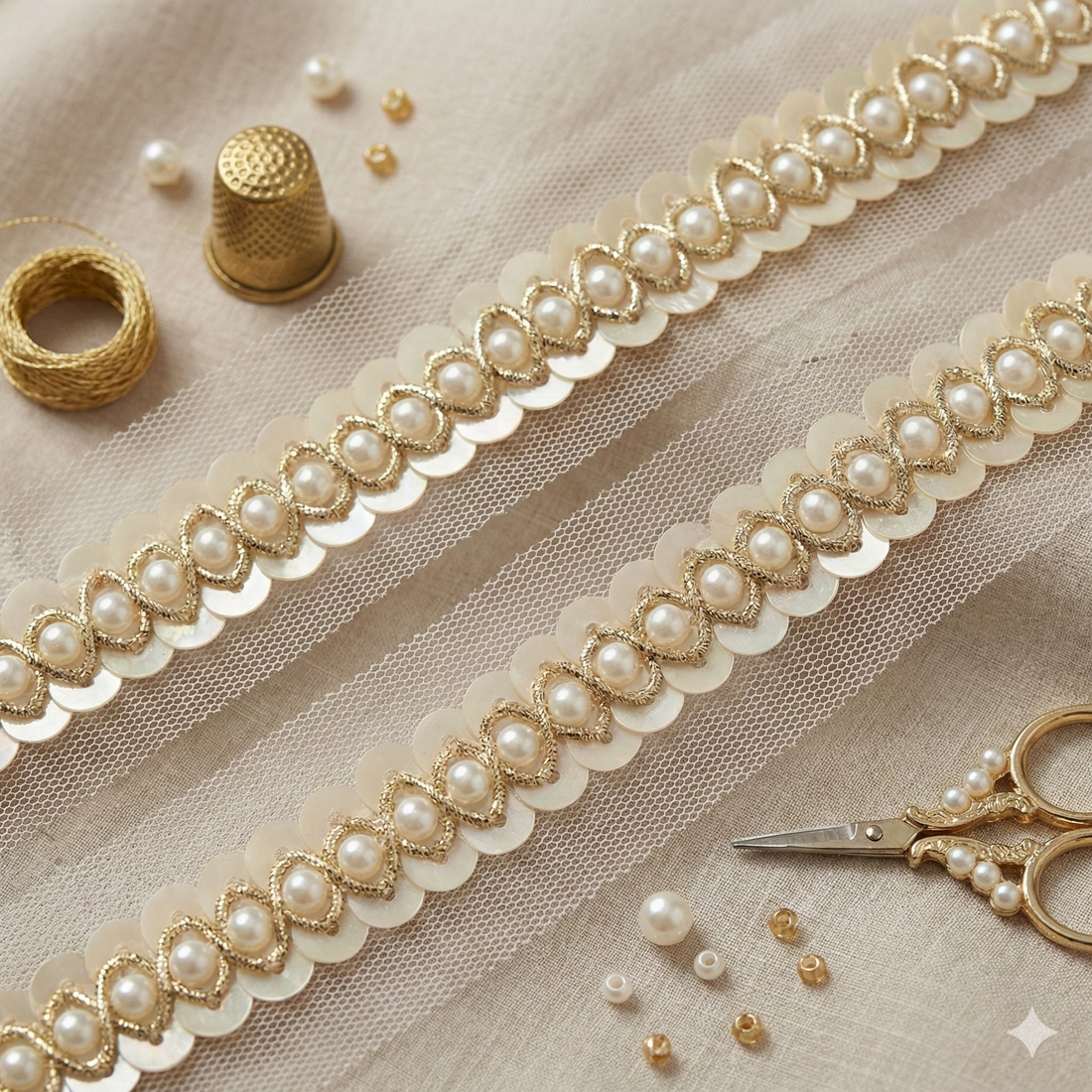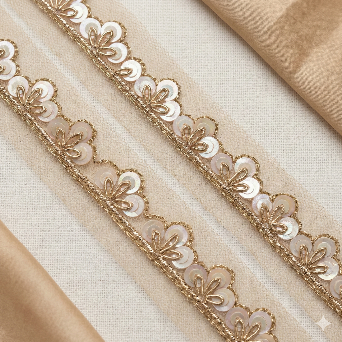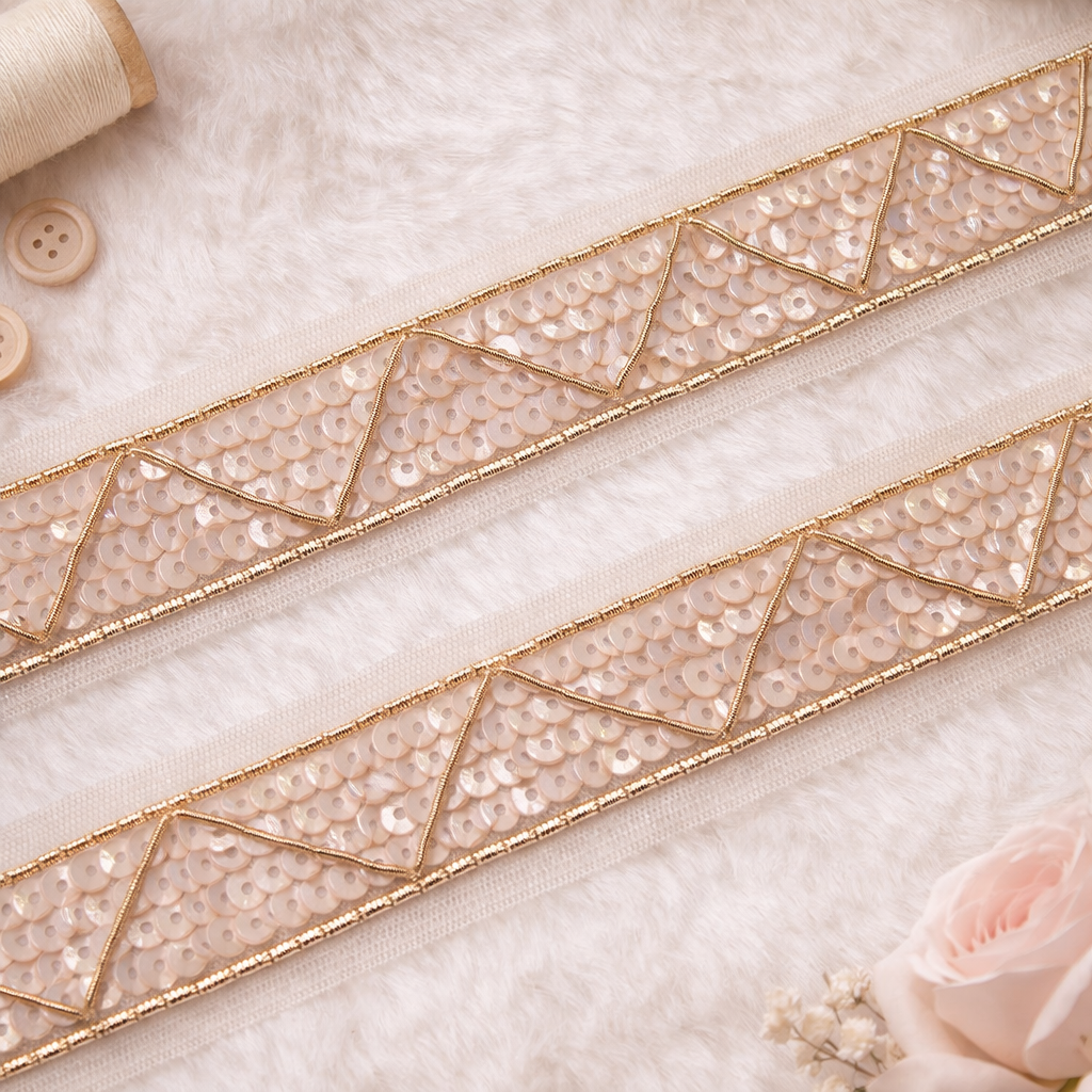 Light Gold Sequin & Pearl Embellished Handcrafted Trim