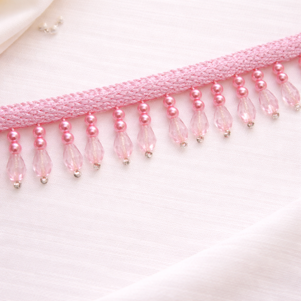Pink Twinkling Beads Handwork Lace