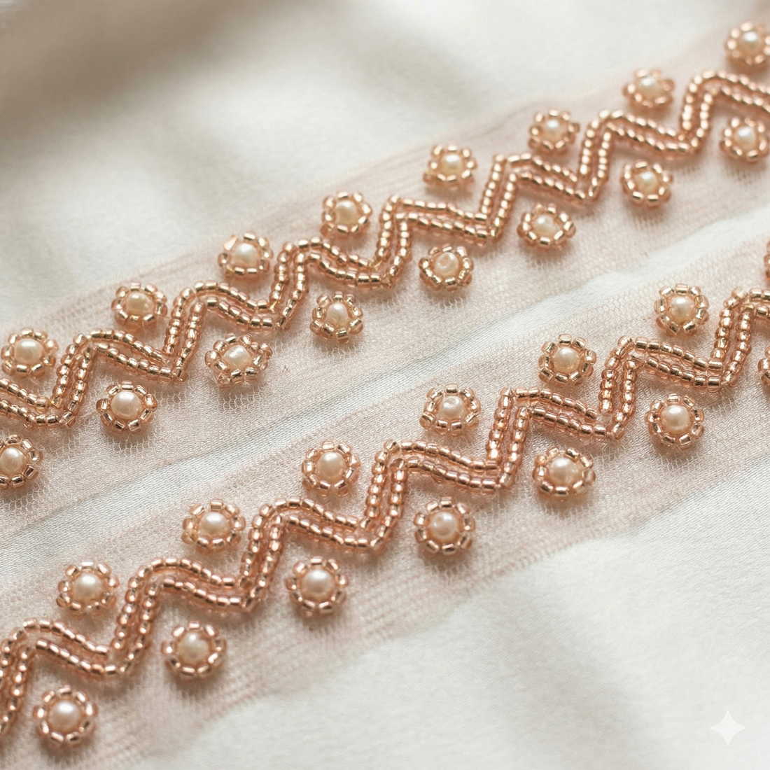 Rose Gold Shimmer Beads Embroidered Handwork Lace