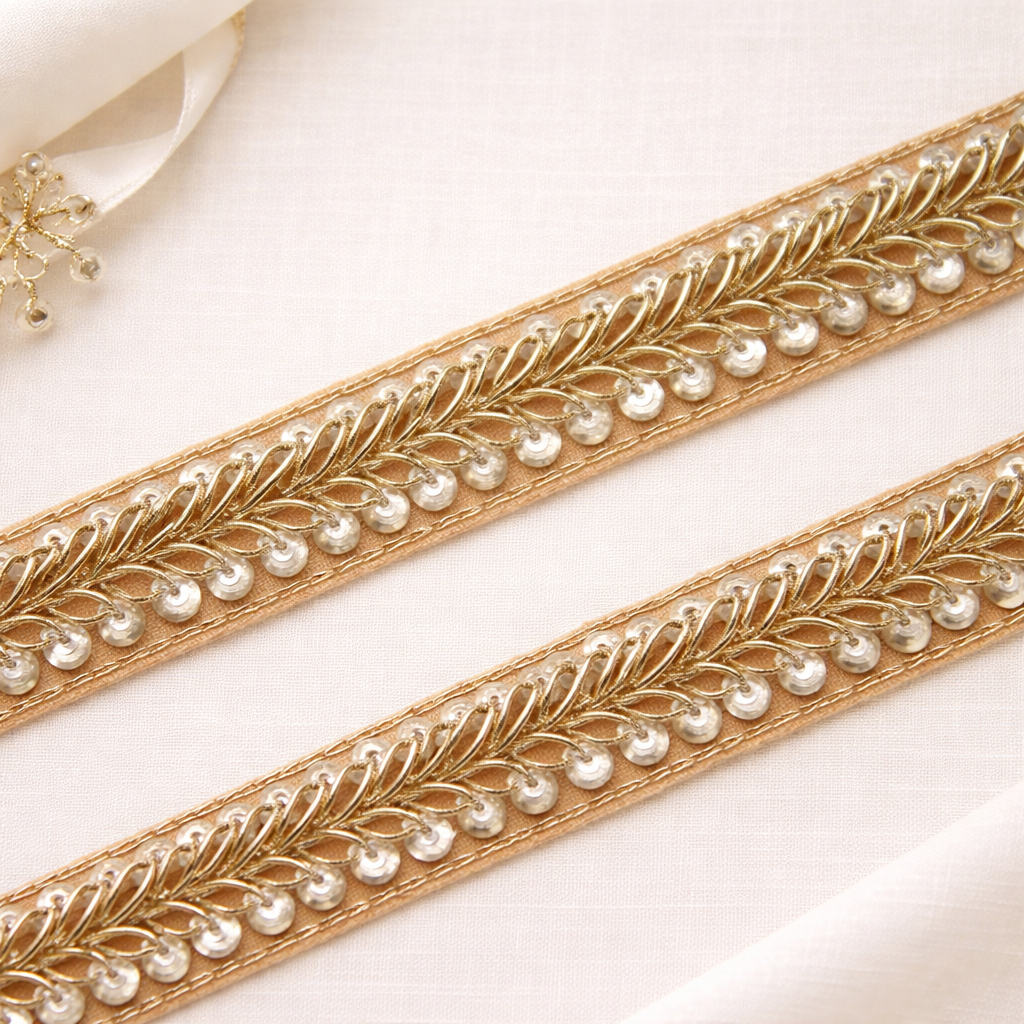 Golden Cutdana Embellished Handcrafted Trim