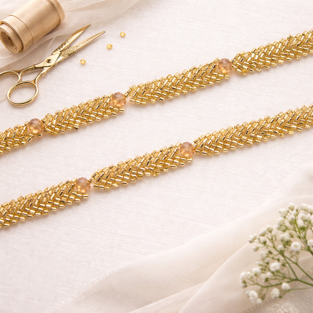 Light Gold Twinkling Beads Handcrafted Trim