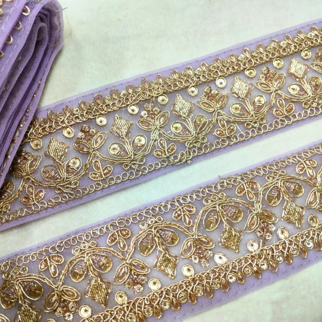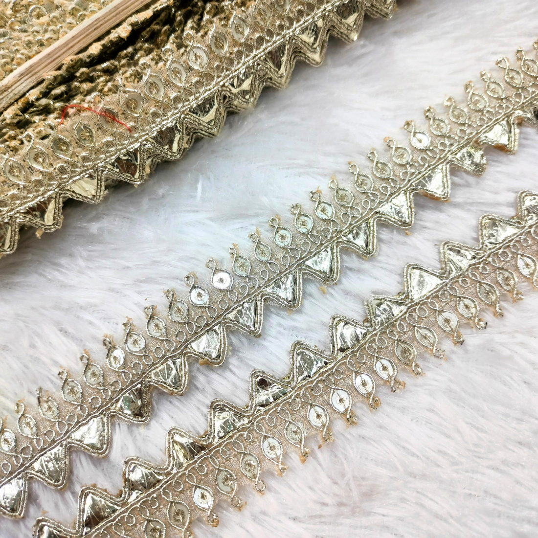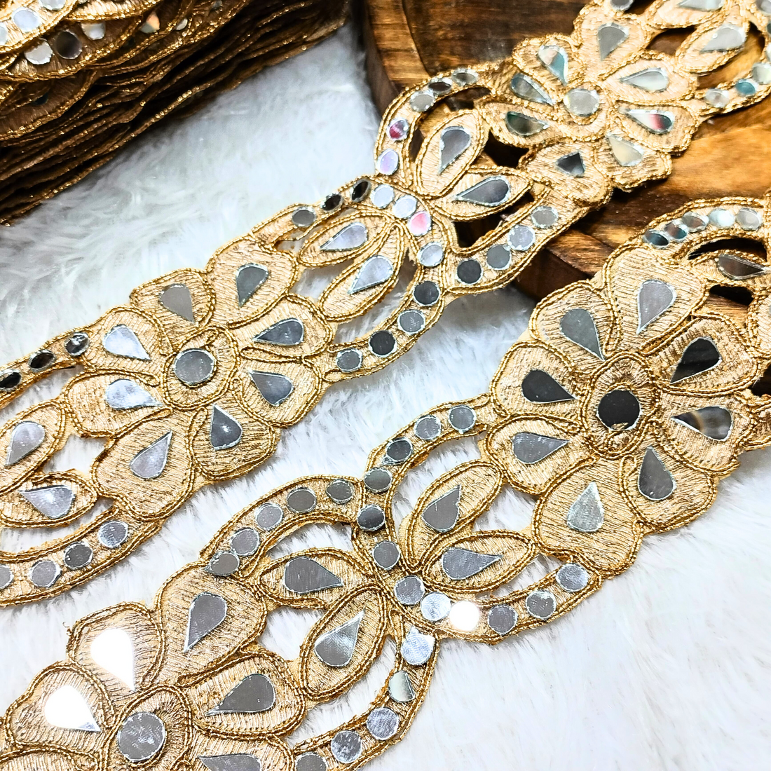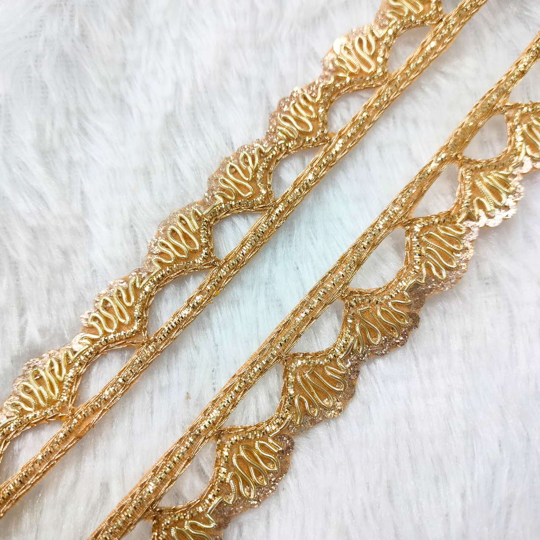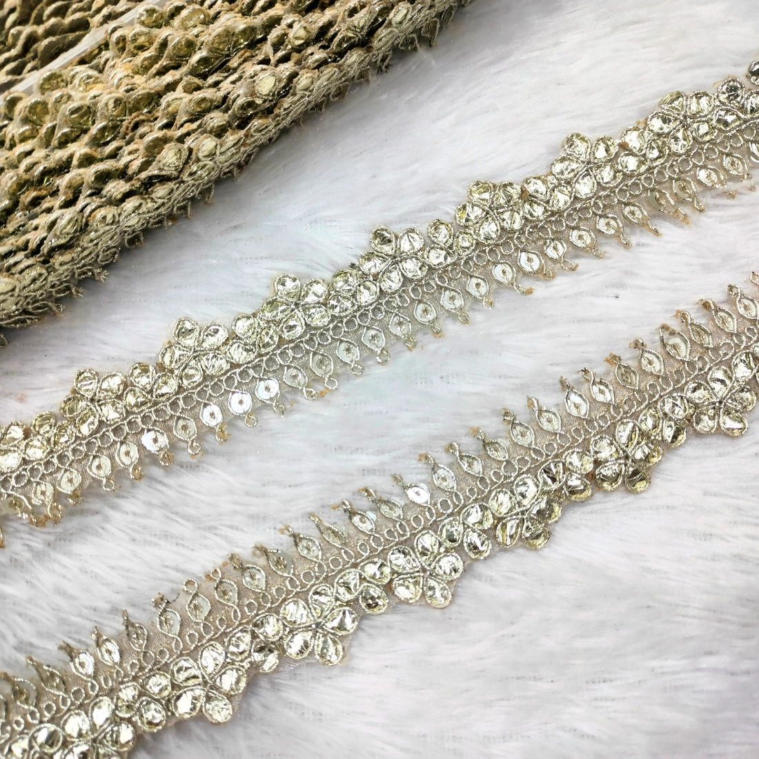 Gold Shimmer Floral Embroidered Handwork Lace Border