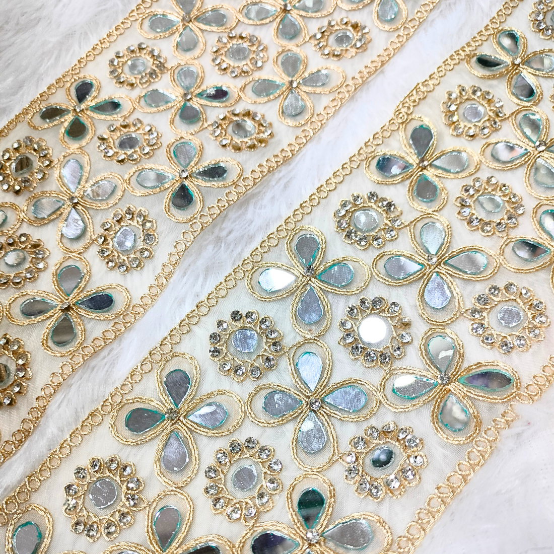 Golden And Off White Shimmer Embroidered Handwork Lace