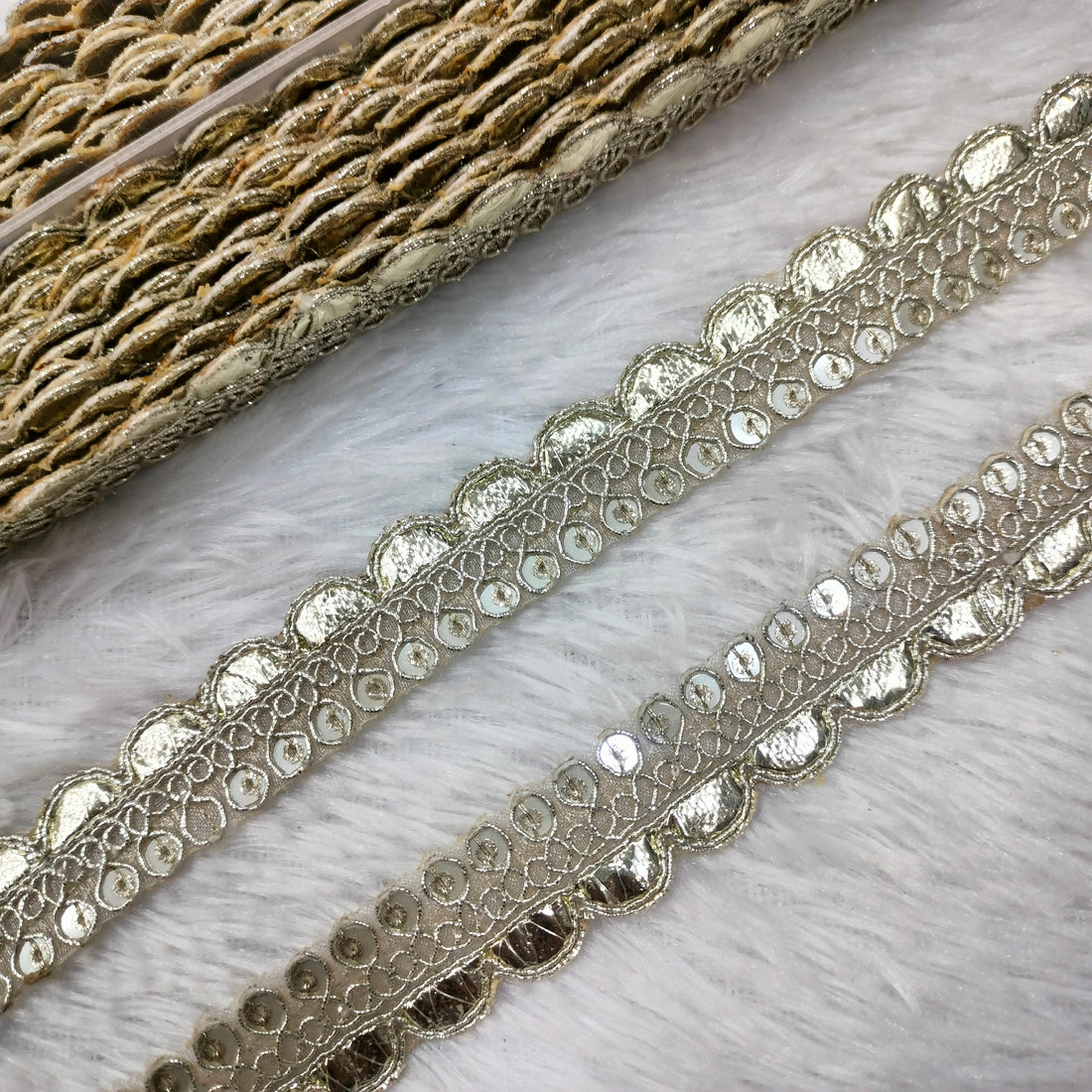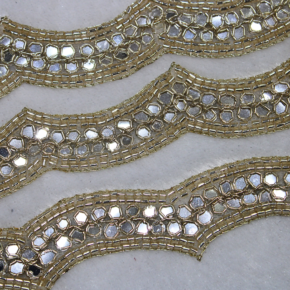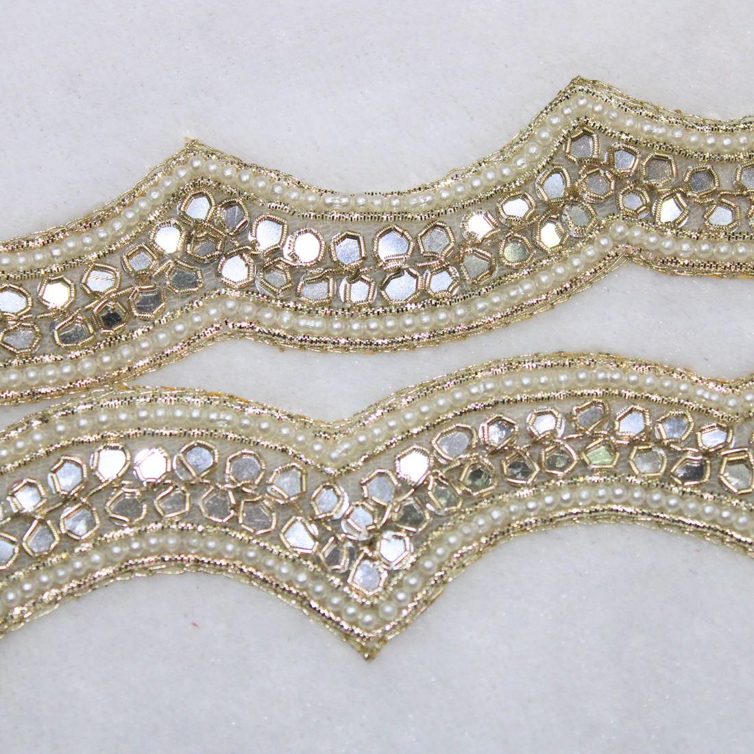 Light Gold Scalloped Mirror Embellished Handcrafted Trim