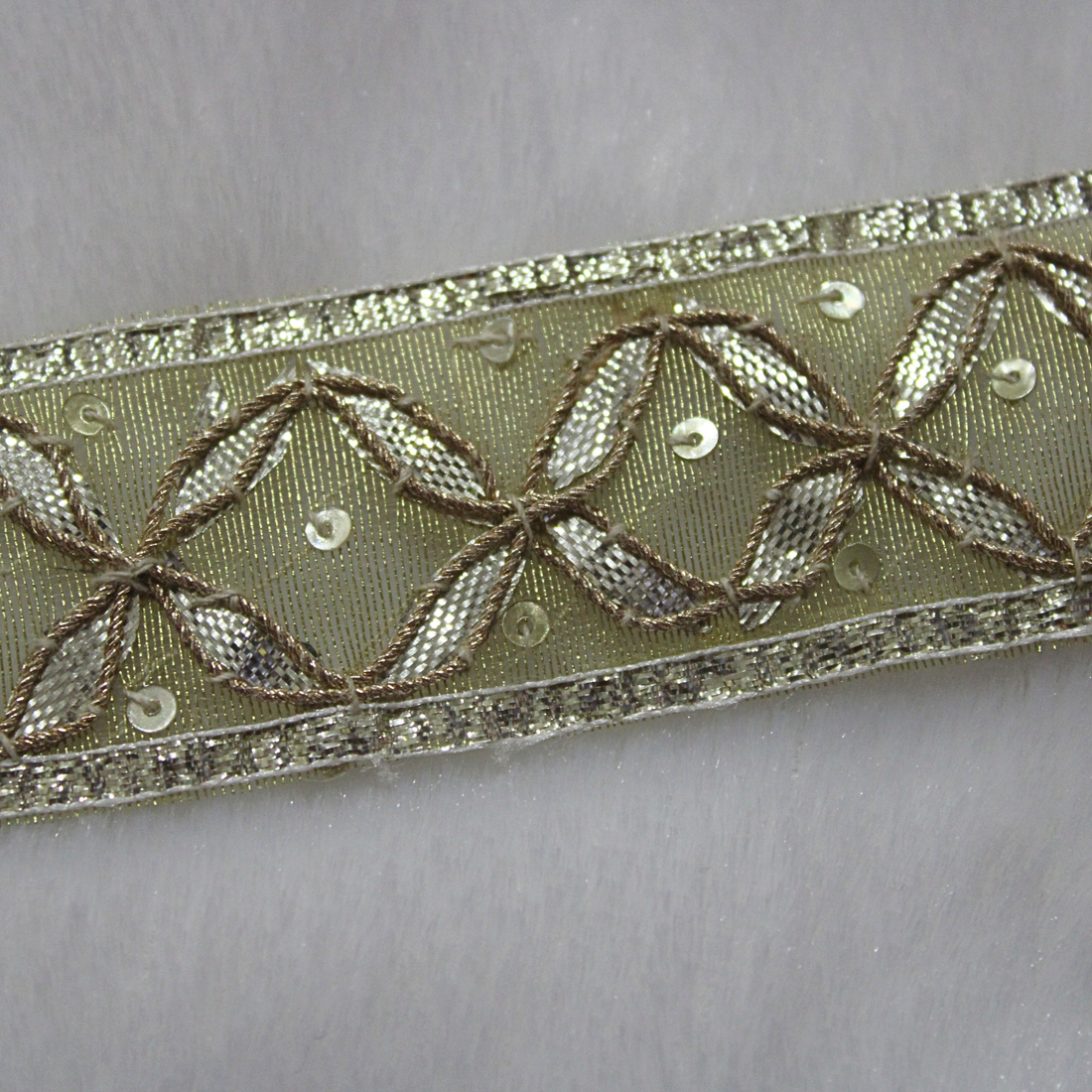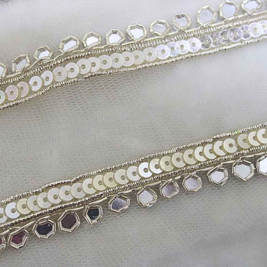 Light Gold Mirror And Sequin Handwork Trim