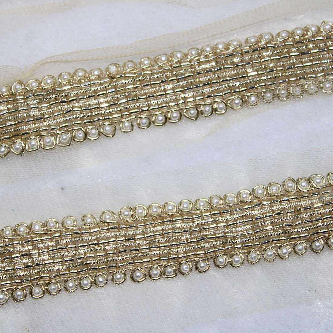 Light Gold Pearl Embellished Handcrafted Trim