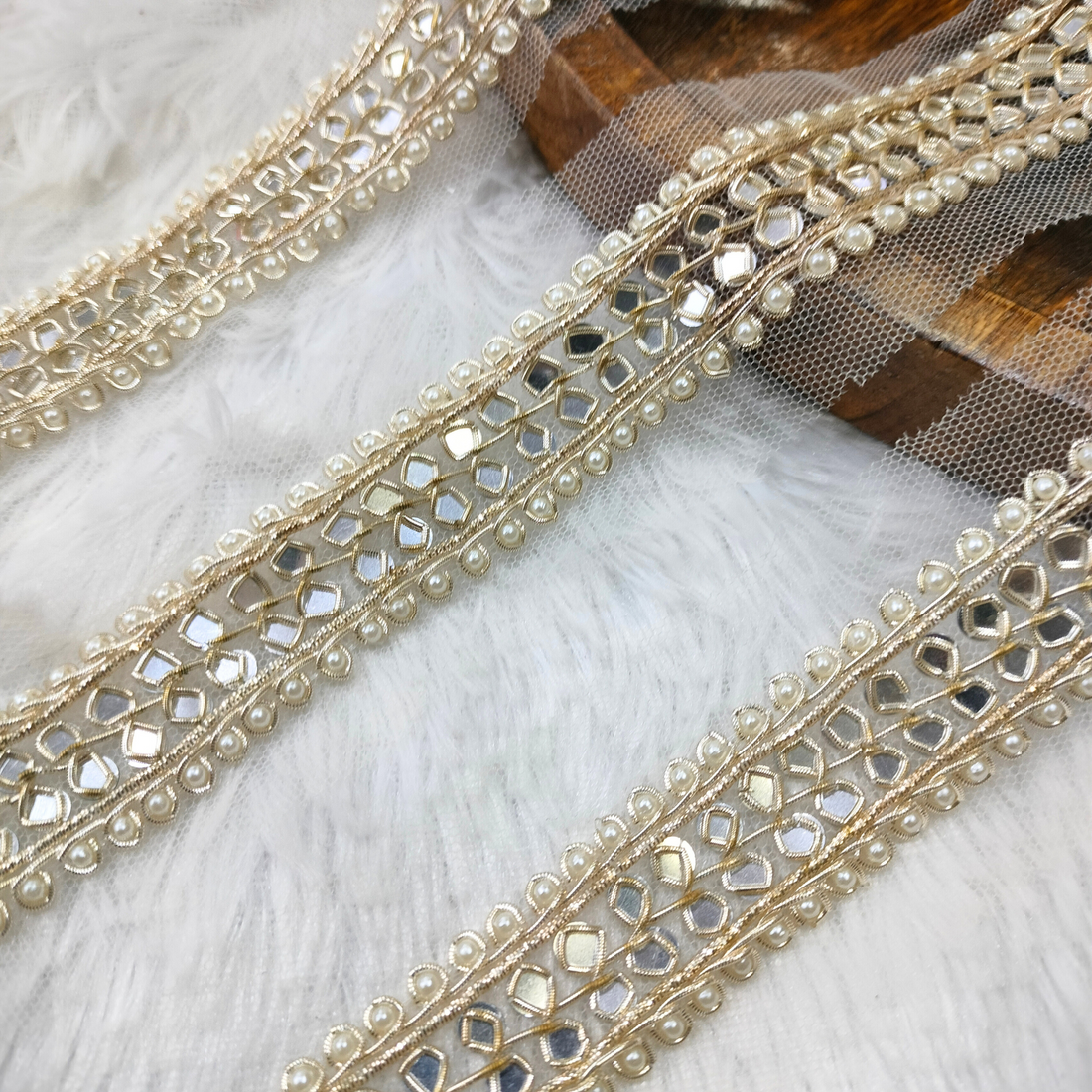 Light Gold Mirror Handwork Trim