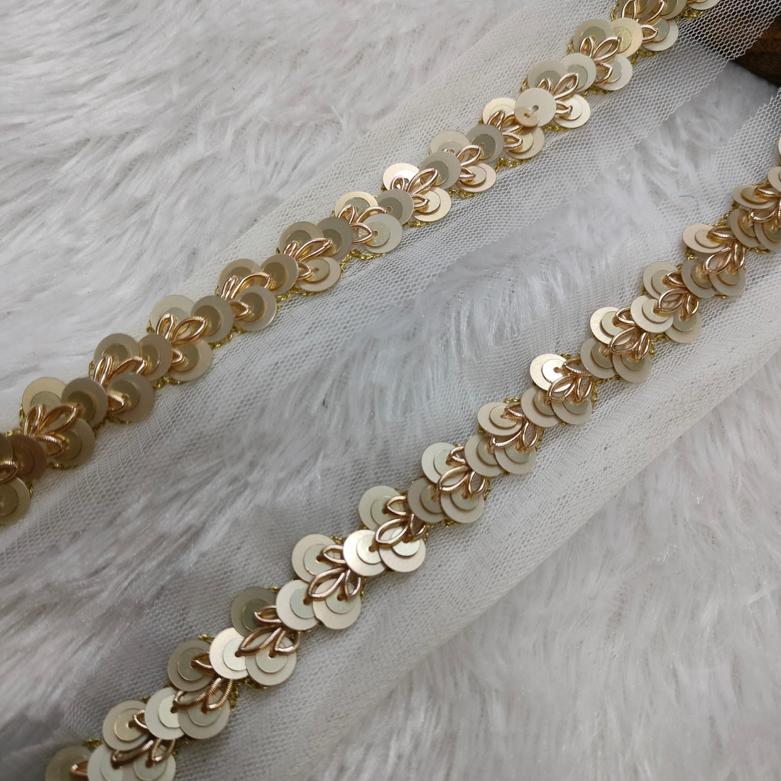 Light Gold Sequin and Stone Embellished Handwork Lace