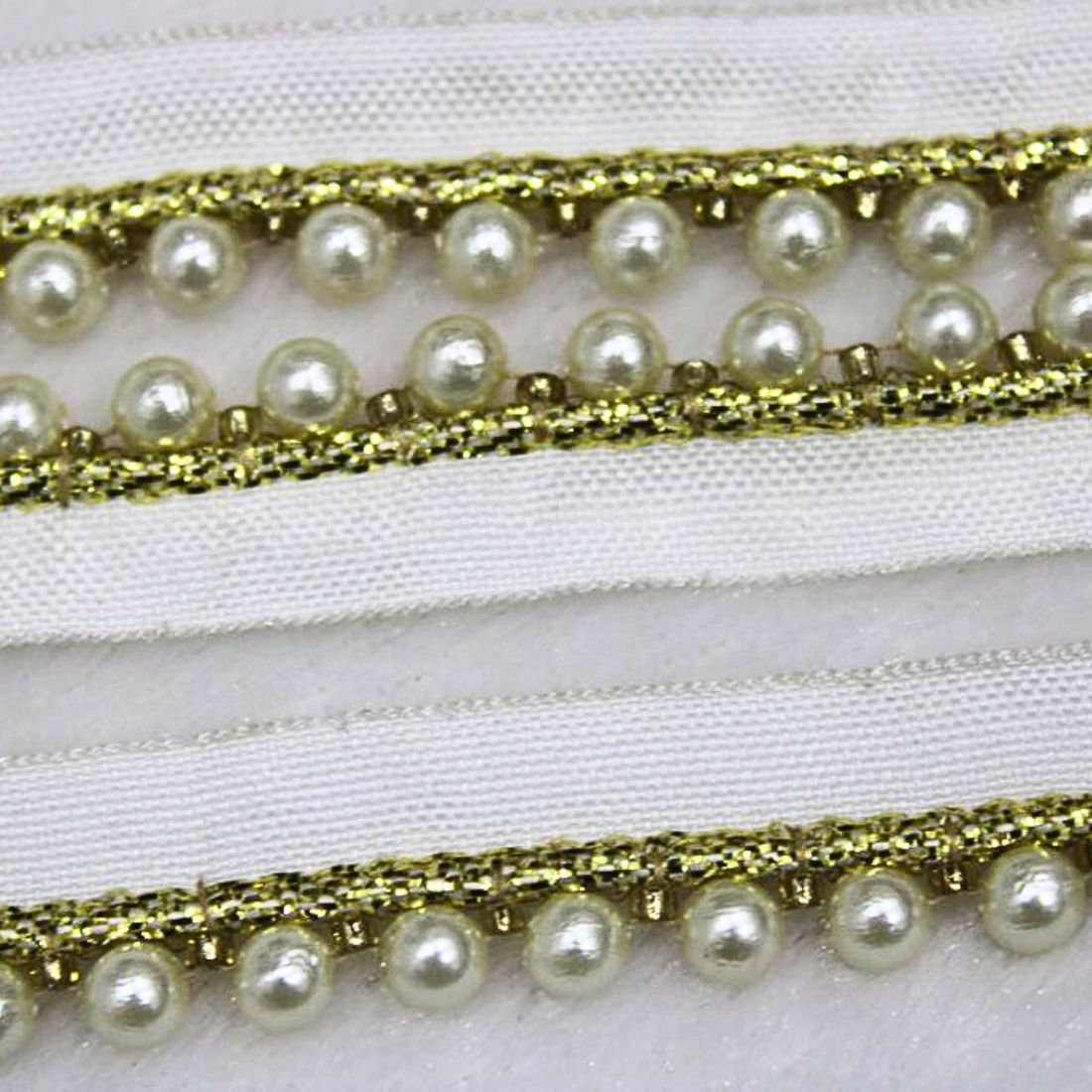 Luxurious Gold Zari and White Pearl Lampi Trim