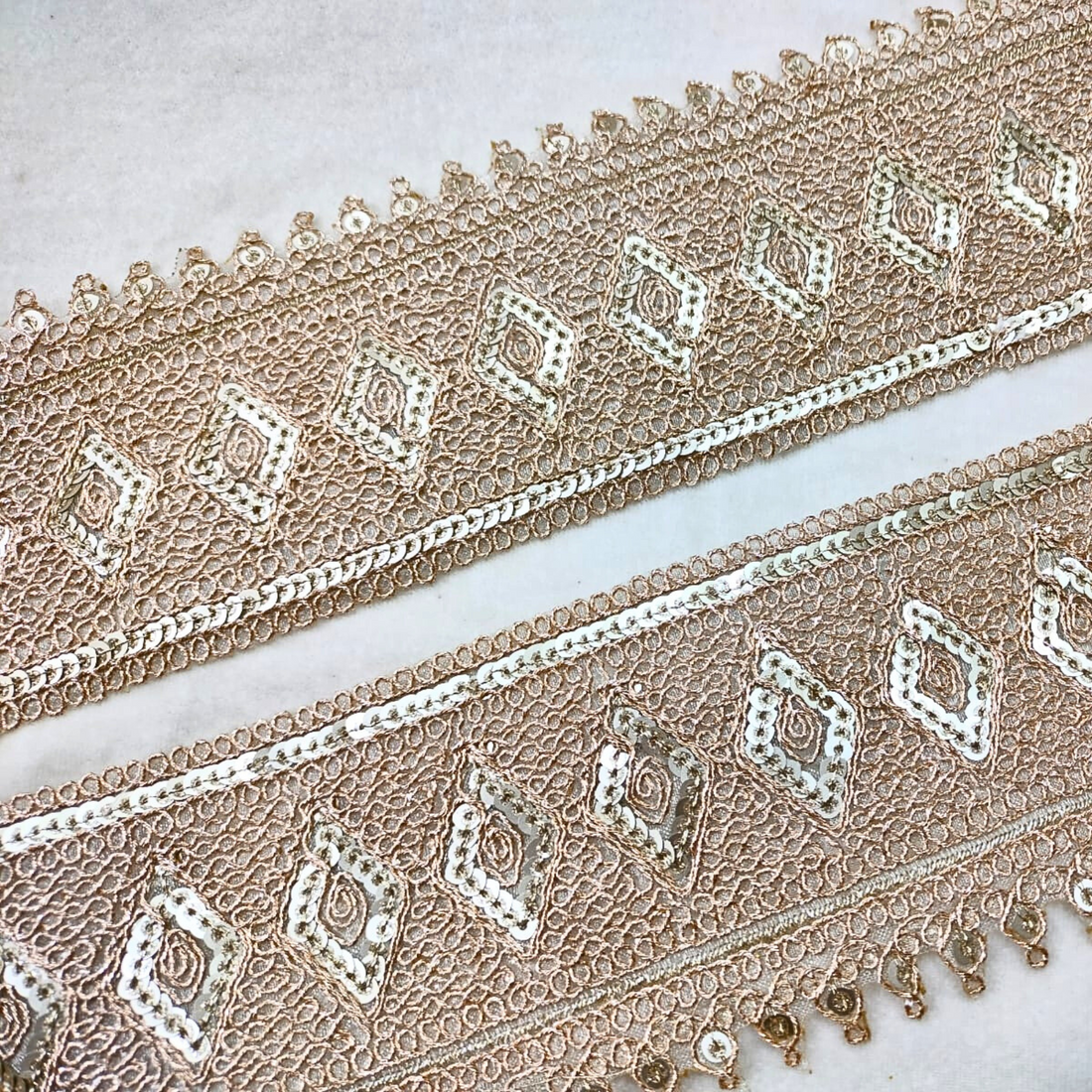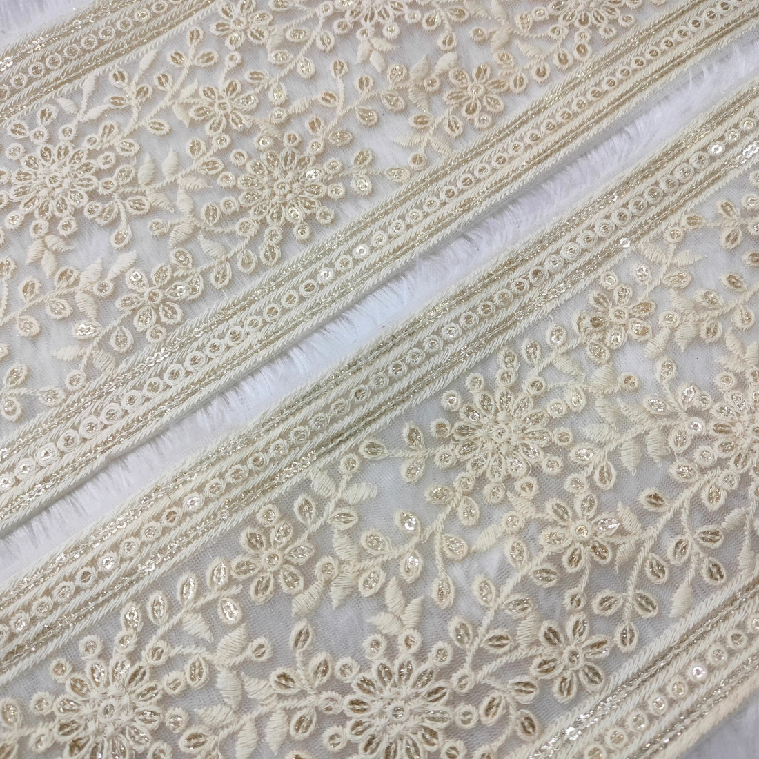 Light Gold Shimmer Embroidered Handwork Lace Border