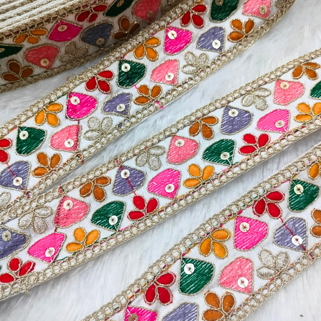 Multicolor Geometric Embroidered Traditional Lace Trim