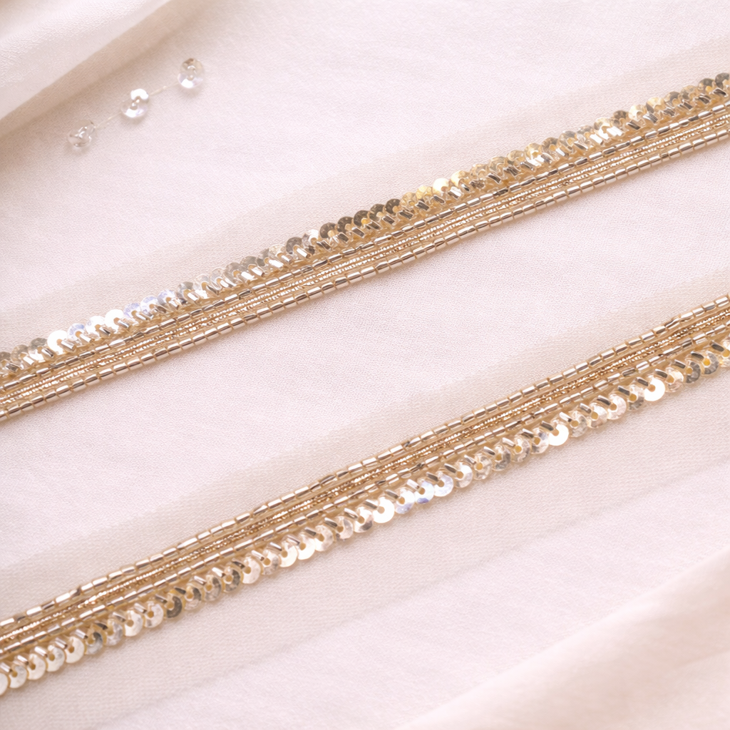 Light Gold Sequin and Cutdana Handwork Trim