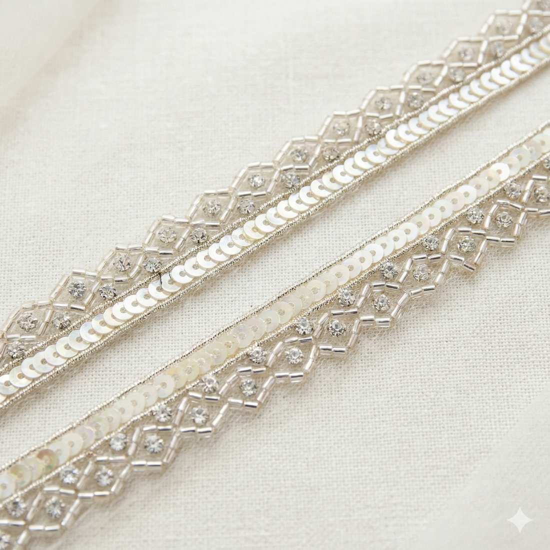Light Gold and Mirror Embellished Handwork Trim