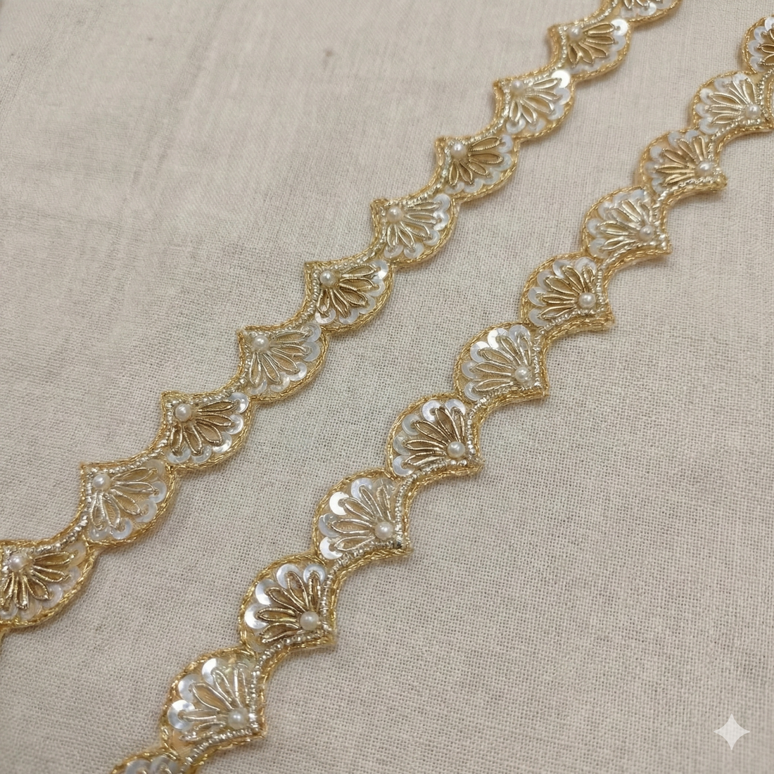 Light Gold Scalloped Mirror Embellished Handcrafted Trim