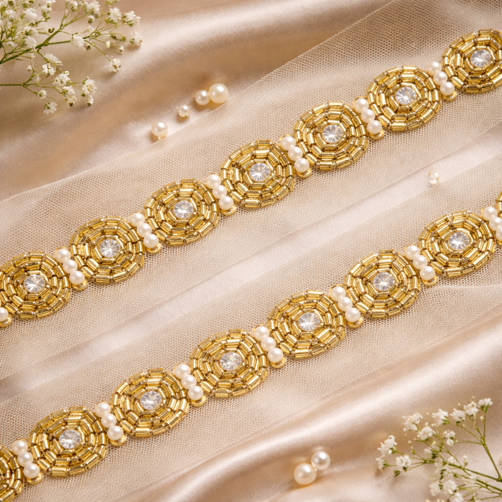 Luxe Pearl & Mirror Work Lace with Zari Base