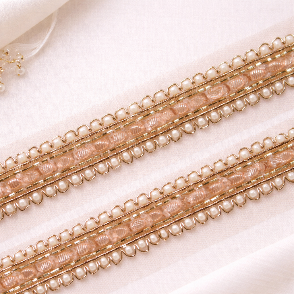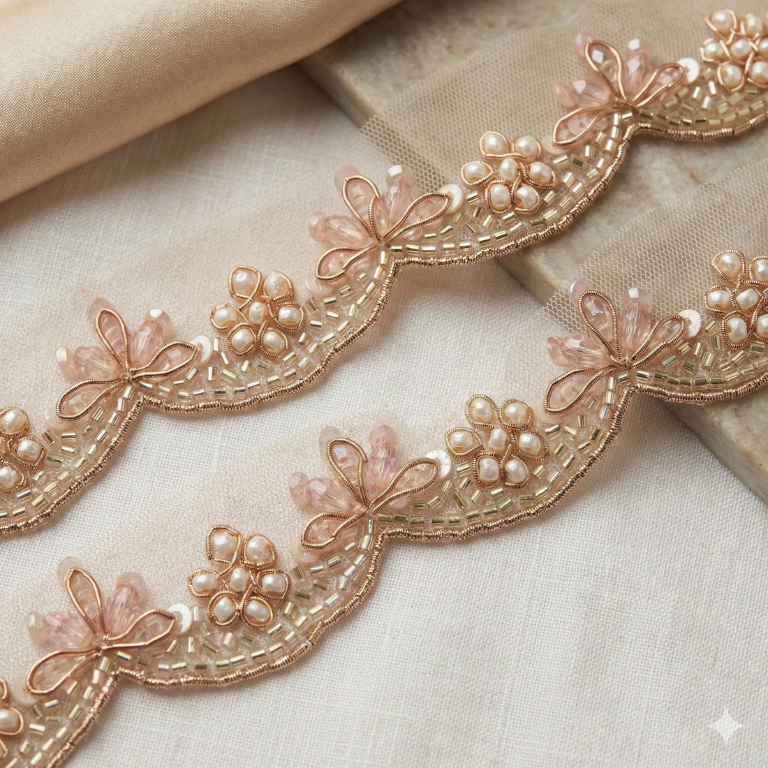 Rose Gold Cutdana Embellished Handcrafted Trim
