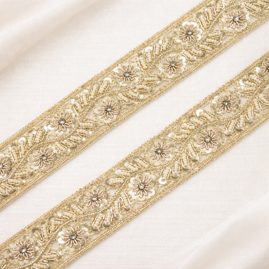 Unveil timeless elegance with our Golden Handcrafted Zardozi Trim. Expertly crafted by skilled artisans, this...
