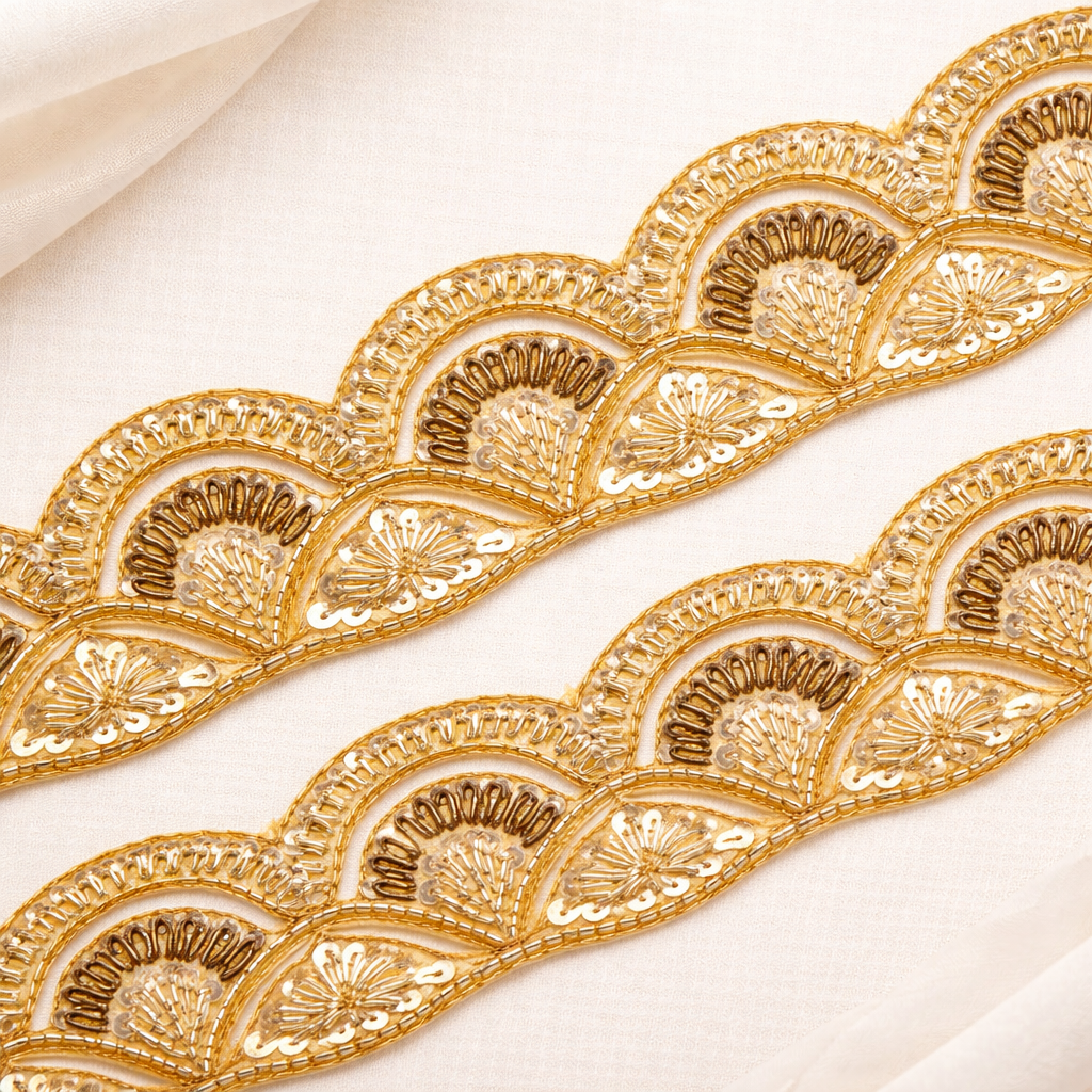 Enhance your creations with the opulent beauty of our Dark Gold Handcrafted Zardozi Trim. Handcrafted...