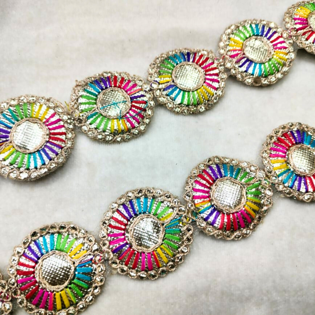 Multicolor Mirror-Work Round Lace
