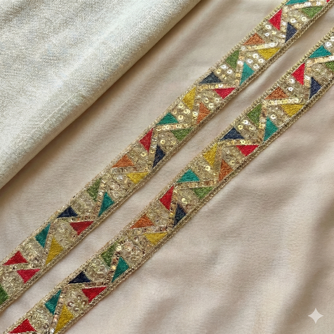Triangular Motif Multicolour Zari & Mirror Lace Trim