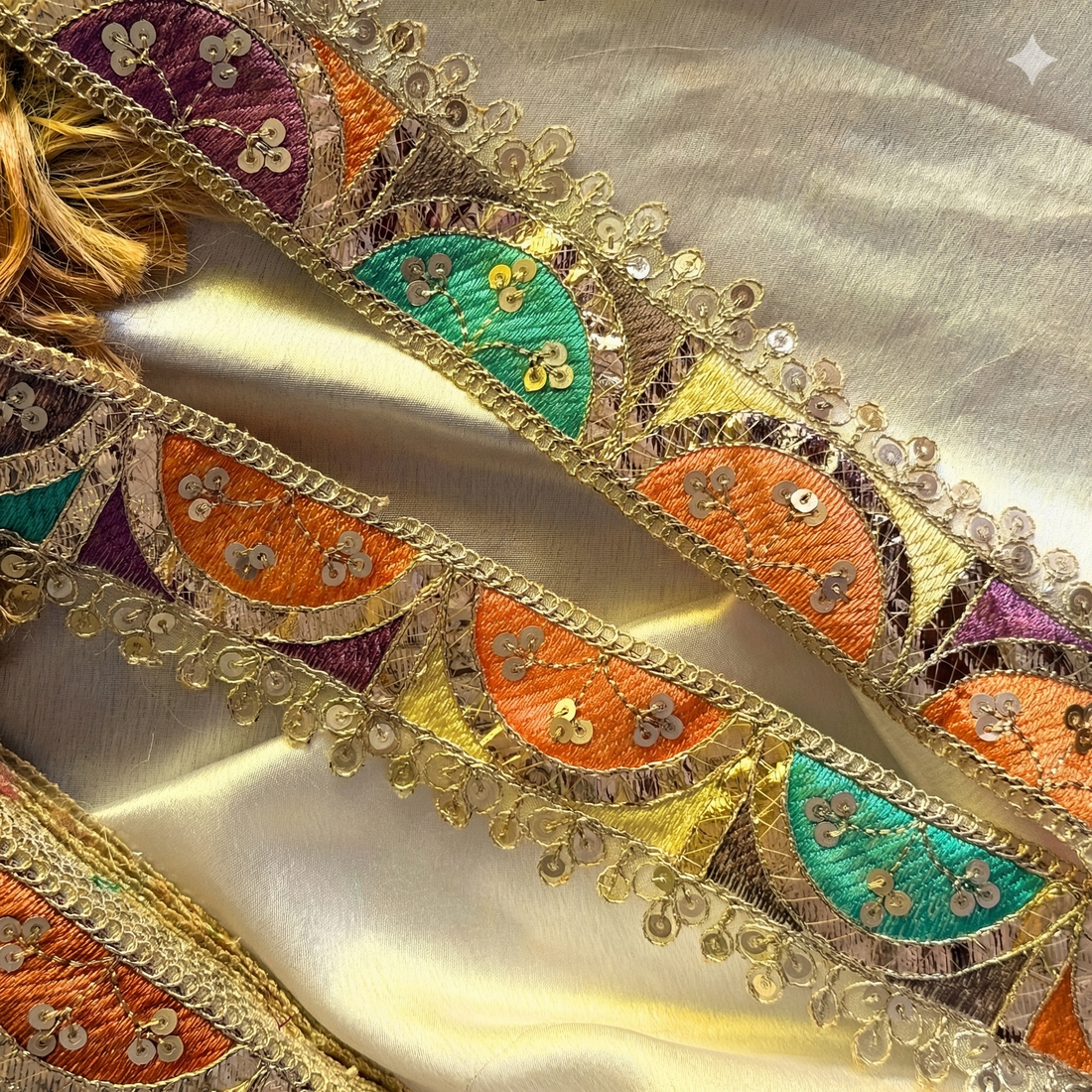 Half-Moon Motif Multicolour Zari & Sequin Lace Border