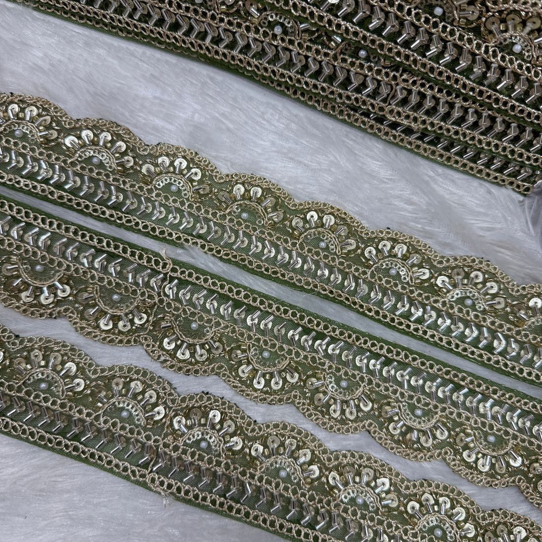 Infuse your designs with bold elegance and vibrant charm with our Embellished Cutdana Handwork Trim...