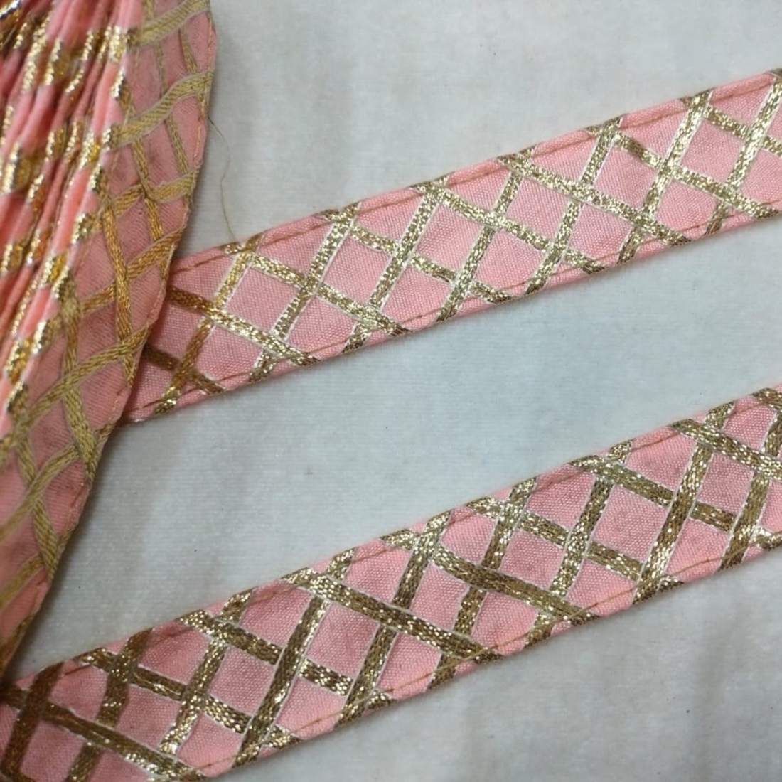 Handcrafted Zari Check Pattern Gota Lace