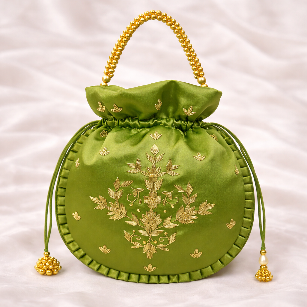Green Embroidered Potli