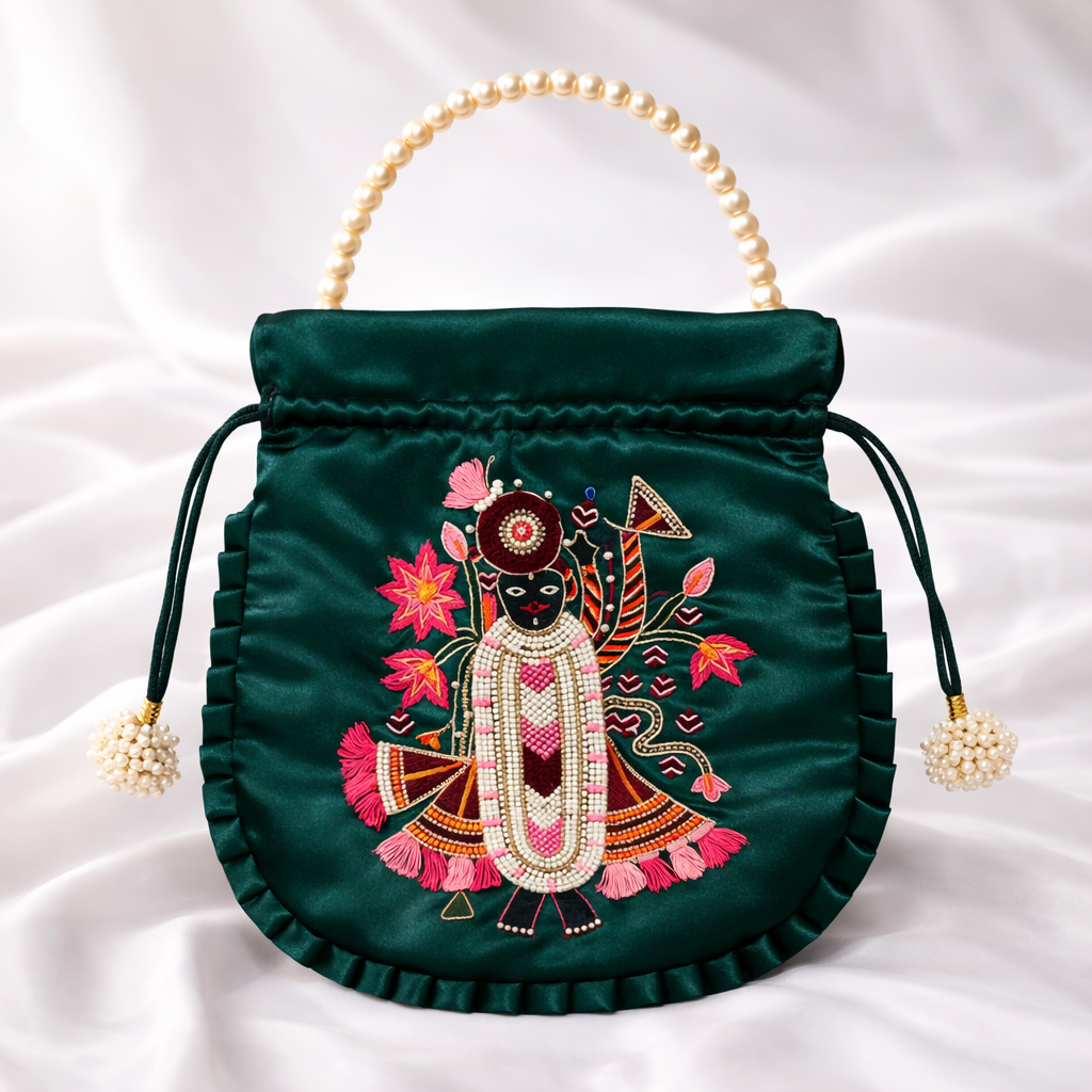 Emerald Green Shreenathji Embroidered Potli