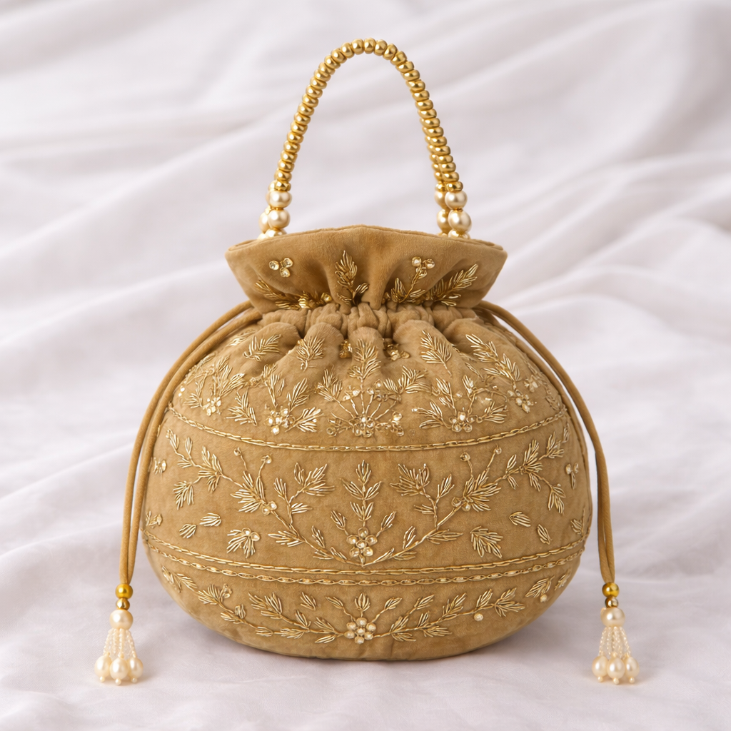 Champagne Gold Embroidered Potli