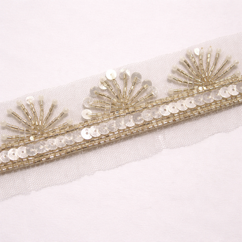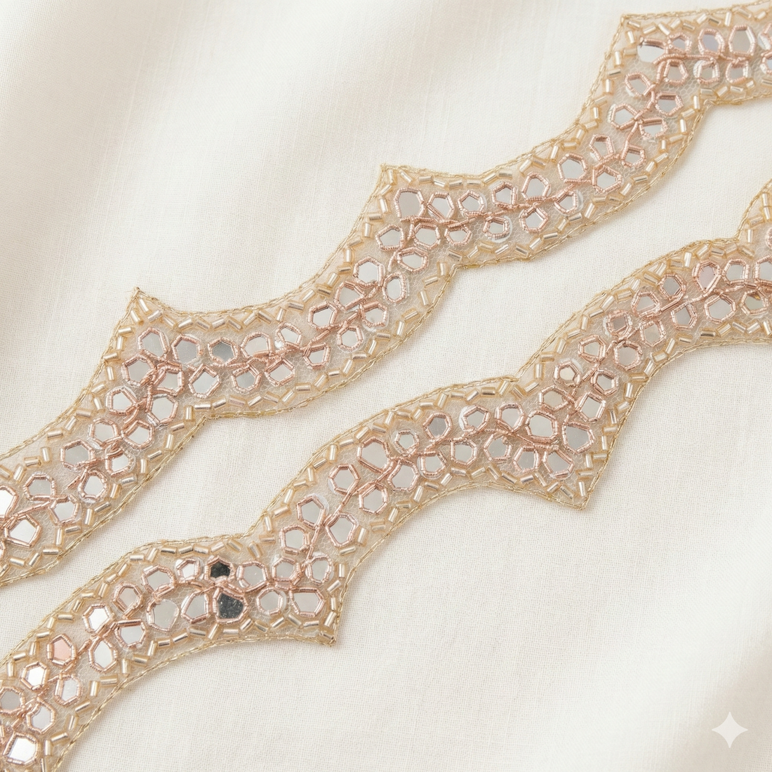 Light Gold Mirror And Stone Embellished Handwork Trim