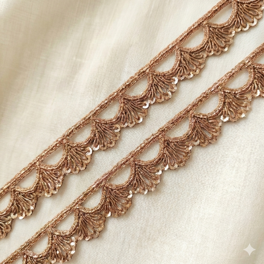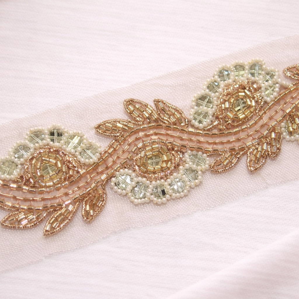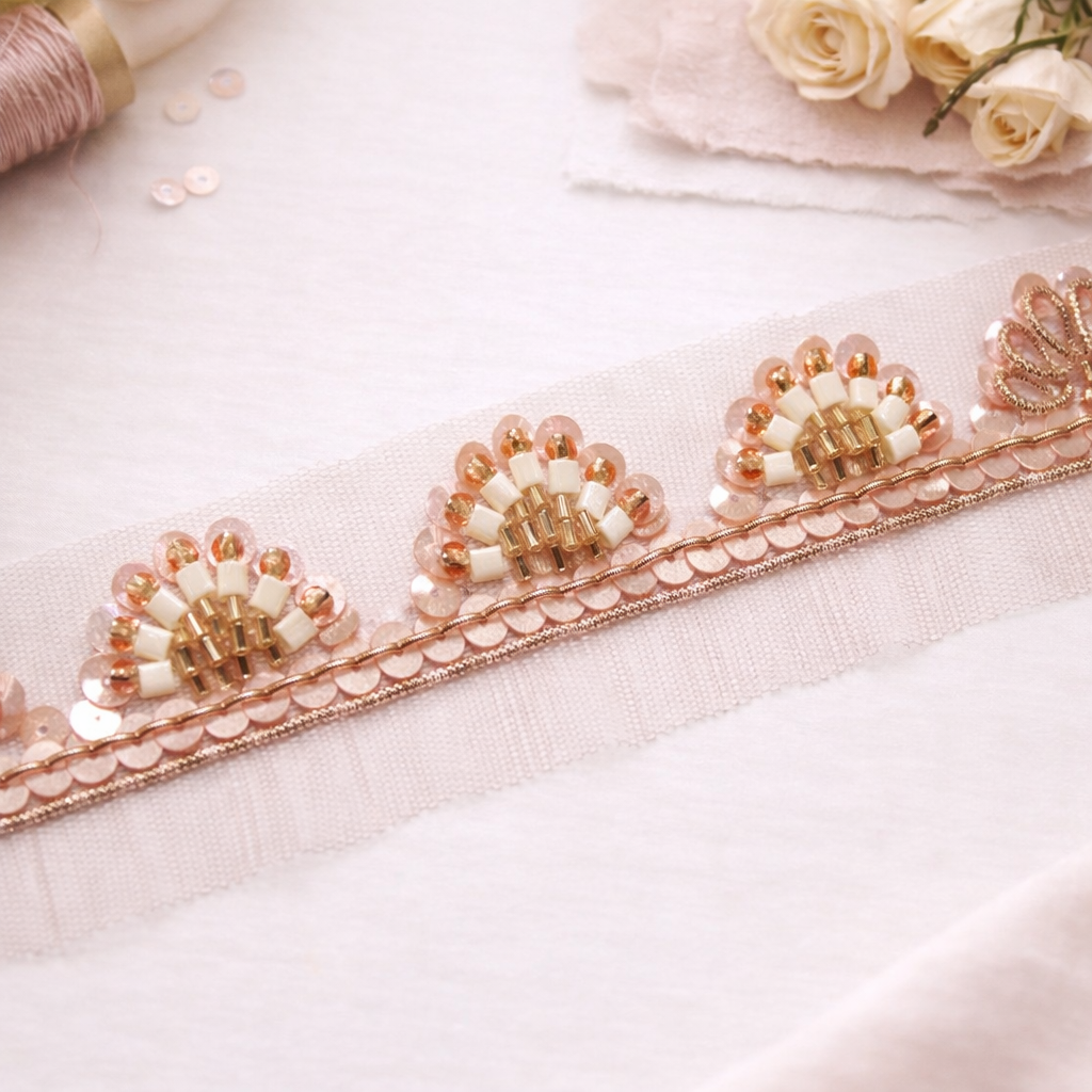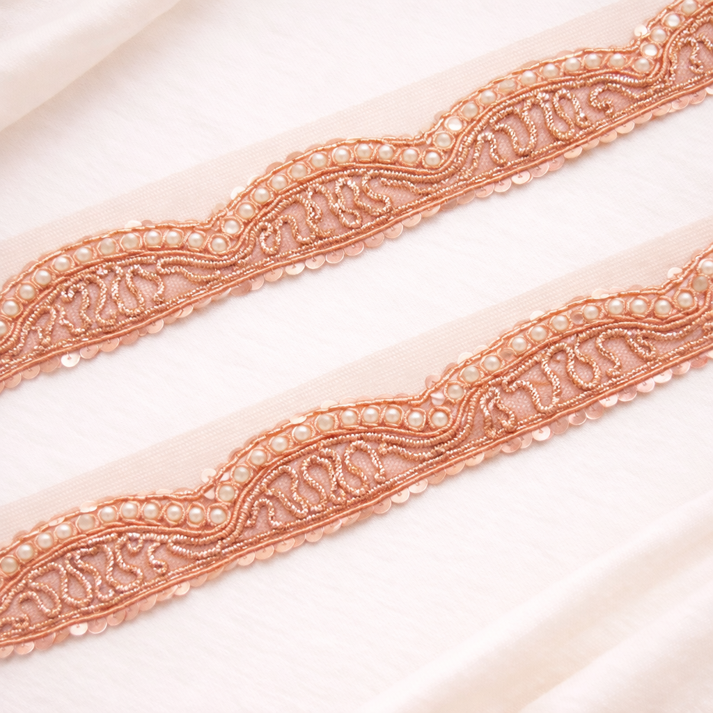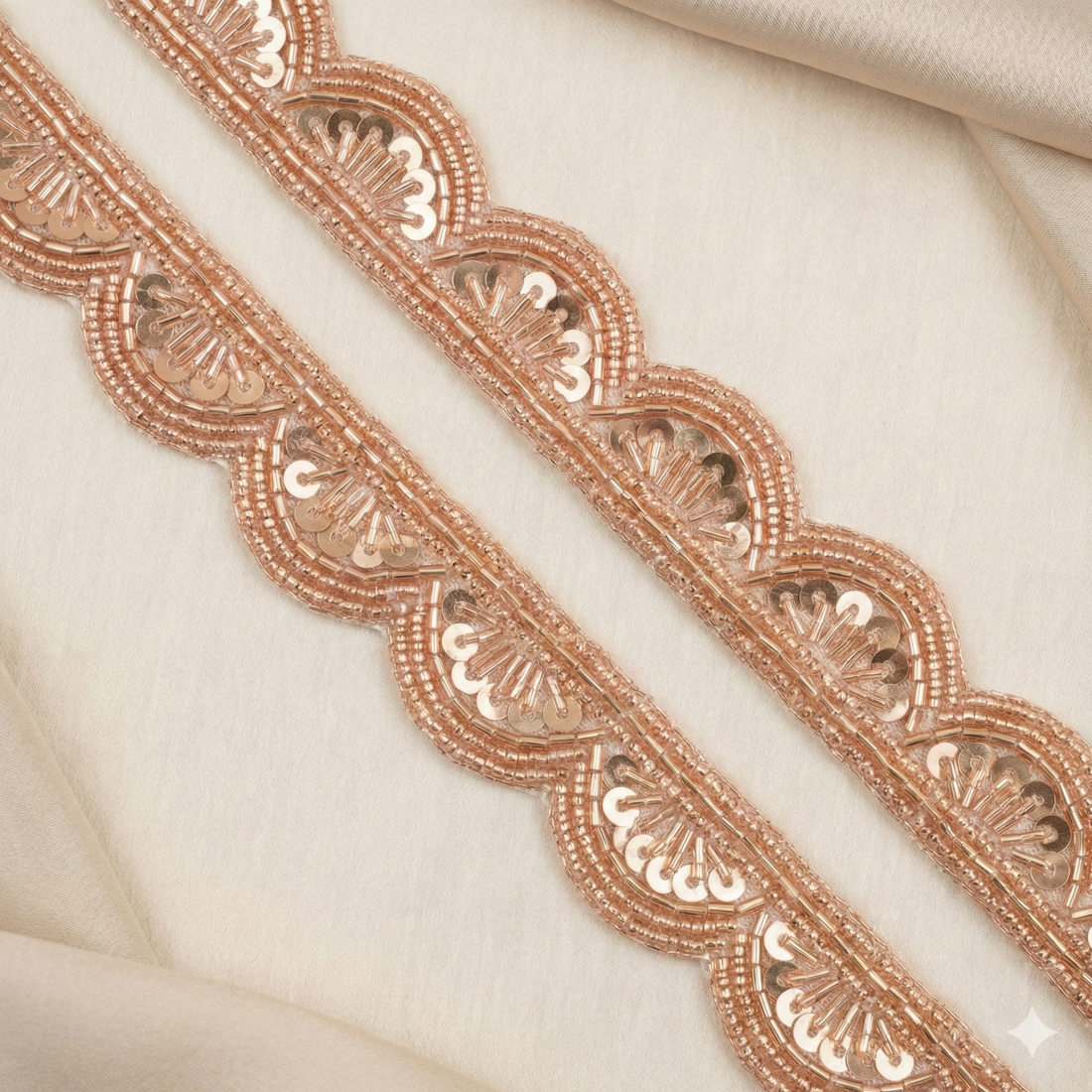 Elevate your designs with our Rose Gold Embellished Handcrafted Trim. Featuring intricate beadwork, sequins, and...