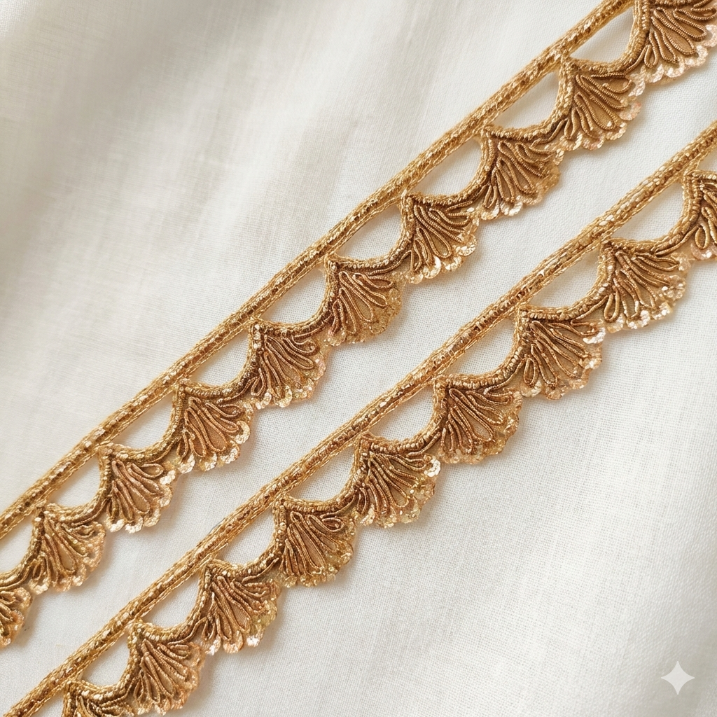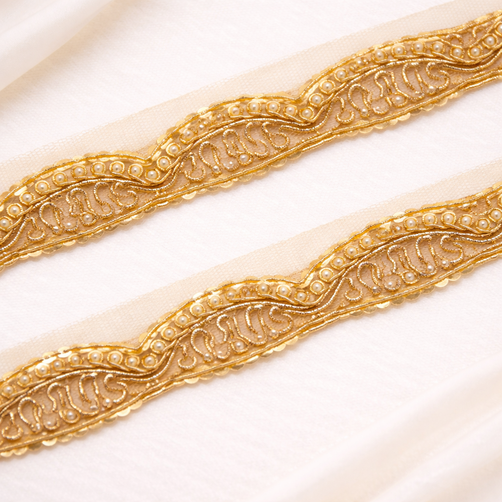Our Light Golden Embellished Handcrafted Trim adds an opulent touch with its intricate golden embroidery,...
