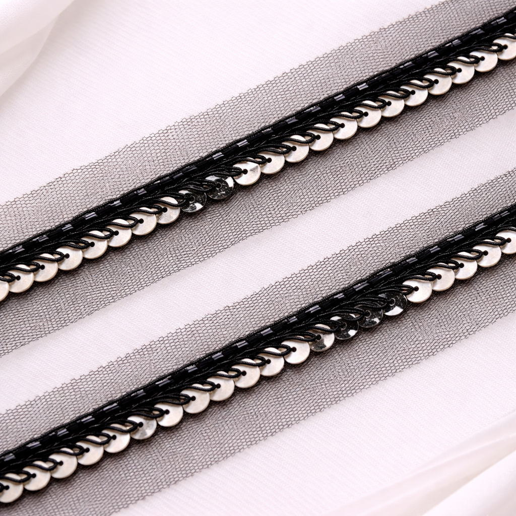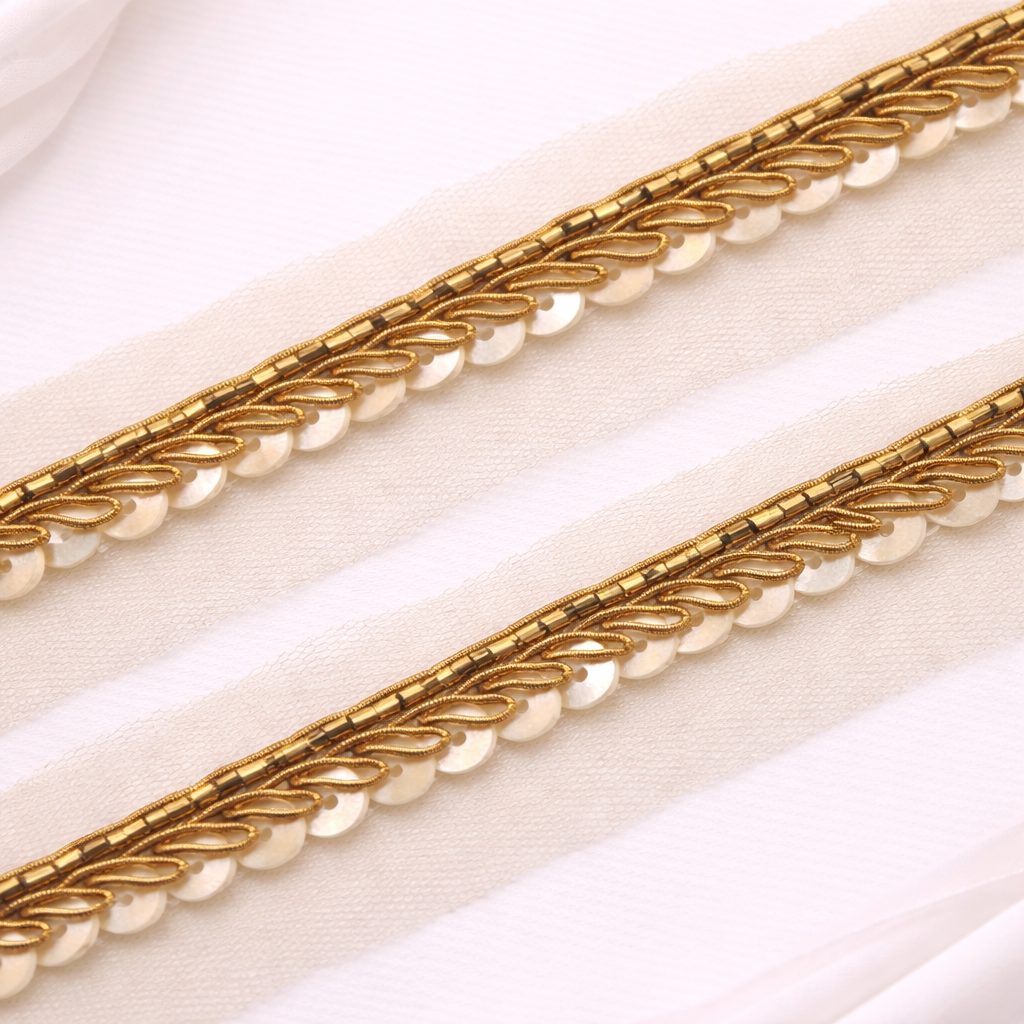 Bring a touch of sophistication and artistry to your designs with our Sequins Handwork Lace. Carefully crafted by skilled artisans, this trim features intricate details that add a unique, luxurious element to any project.