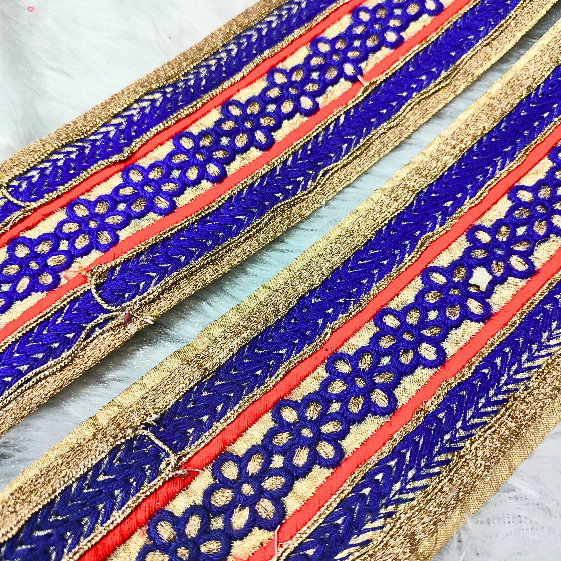 The Fancy Zari and Thread Work Embroidered Border is a beautifully crafted decorative trim, featuring intricate zari (metallic thread) and detailed threadwork embroidery. This combination adds a luxurious and textured finish to any fabric, often used to enhance sarees, lehengas, dupattas, or home decor pieces like cushions and table runners. The zari threads, typically gold or silver, shimmer against the rich color of the base fabric, while the threadwork adds depth and dimension with floral, paisley, or geometric motifs. Perfect for weddings, festive occasions, or special events, this border creates a timeless, elegant look that blends tradition with contemporary style.