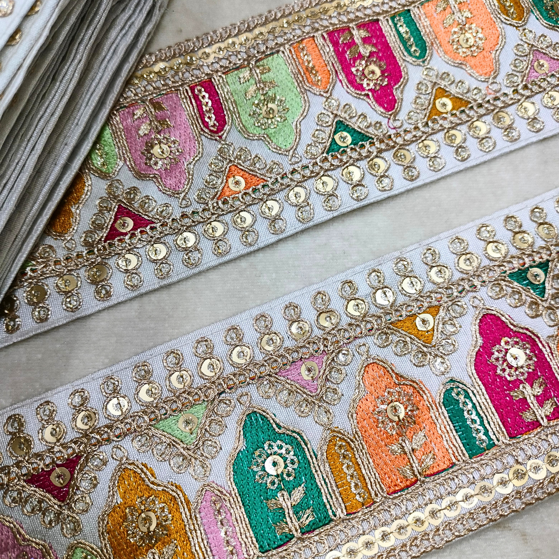 Add a touch of elegance and vibrant charm to your creations with our Fancy Multicolor Embroidered Lace. Carefully crafted with a blend of rich, vibrant threads, this exquisite lace features intricate designs that combine multiple colors to create stunning patterns. Perfect for a wide range of applications, our multicolor embroidery lace is ideal for enhancing bridal gowns, evening wear, home décor items, and accessories.