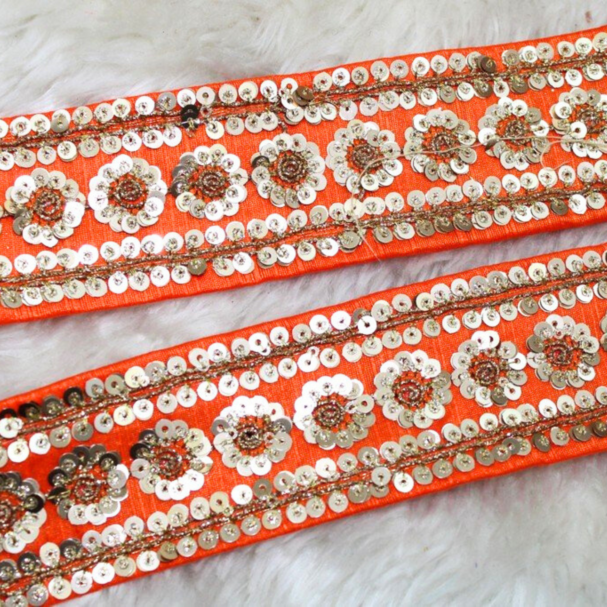 Elevate your creations with floral fancy sequin trim, perfect for dazzling embellishments on sarees, lehengas. This exquisite trim features intricate floral designs enhanced with shimmering sequins, adding a touch of elegance and glamour. Available online, it’s ideal for beautifying borders and lace, making it essential for fashionable ensembles.