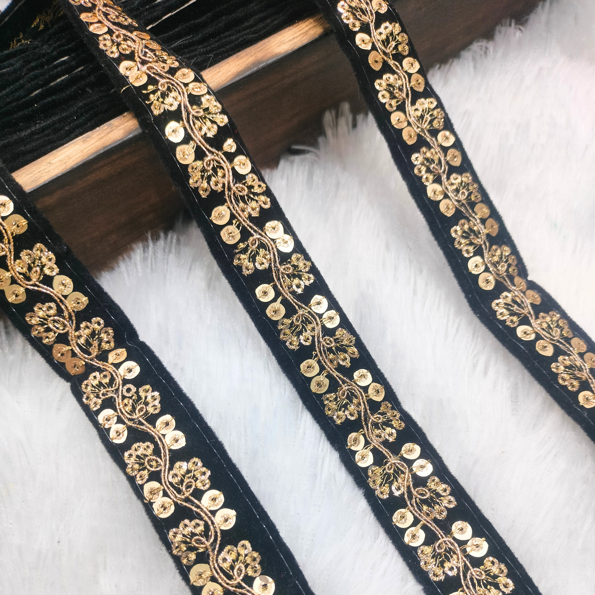 Add a touch of royal elegance to your outfits, décor or DIY projects with our Velvet Embellished Sequin Trim. Crafted on a rich velvet base, each piece features delicately hand-embroidered sequins and stones that catch the light beautifully. The soft texture and premium finish make it ideal for wedding wear, couture projects, ethnic outfits, accessories, DIY craft, home decor, handbags, and customization.