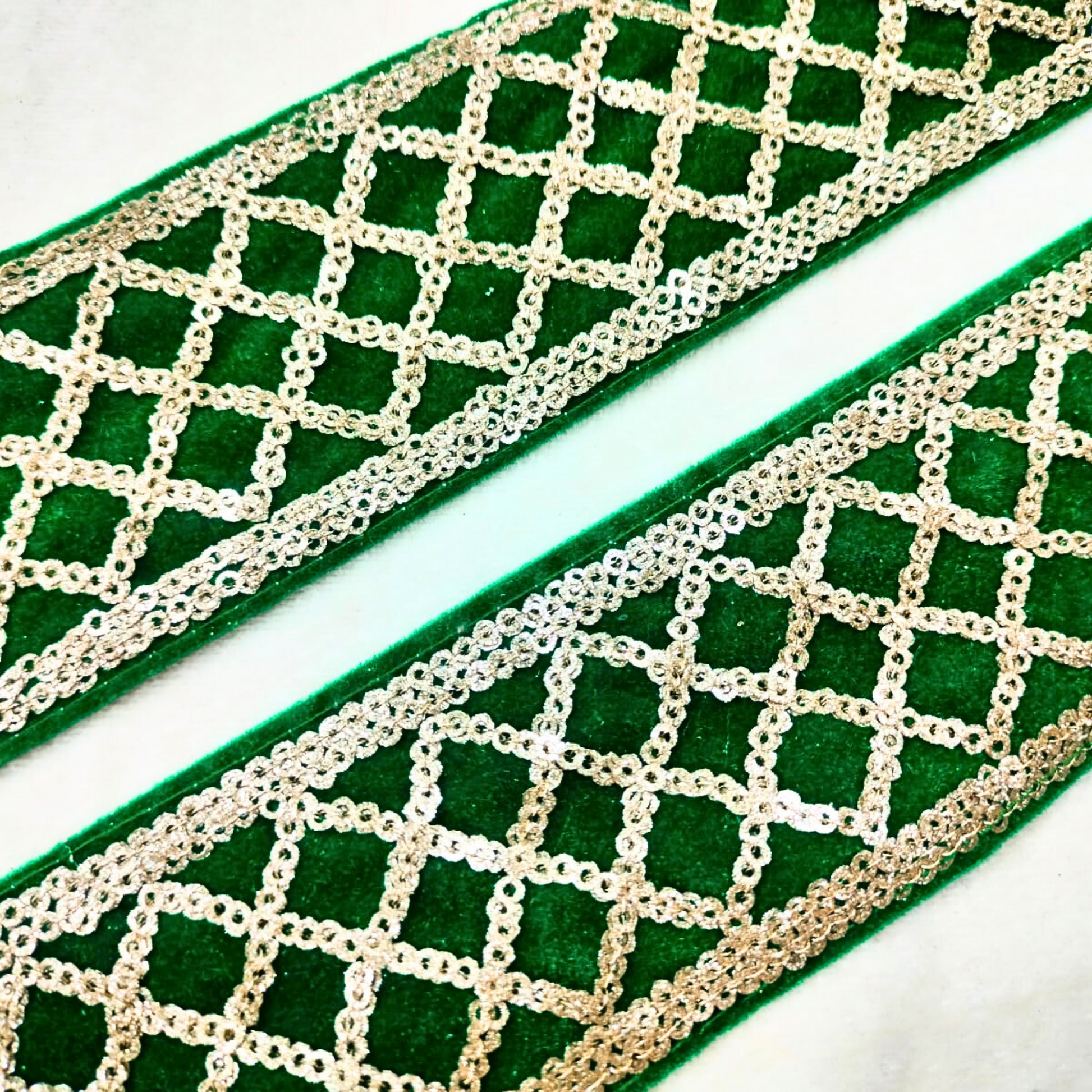 Add a fresh and vibrant touch to your fabrics with our Green Fancy Zari and Thread Work Embroidered Border. This elegant border features a rich green hue, intricately designed with zari and thread embroidery that creates a beautiful, textured pattern. The metallic zari threads add a luxurious shimmer, while the vibrant threadwork brings depth and intricate detail to your fabric. Perfect for enhancing sarees, lehengas, dupattas, or home decor, this embroidered border is ideal for weddings, festivals, and special occasions. Bring a timeless, sophisticated charm to your creations with the stunning blend of green and metallic embroidery!