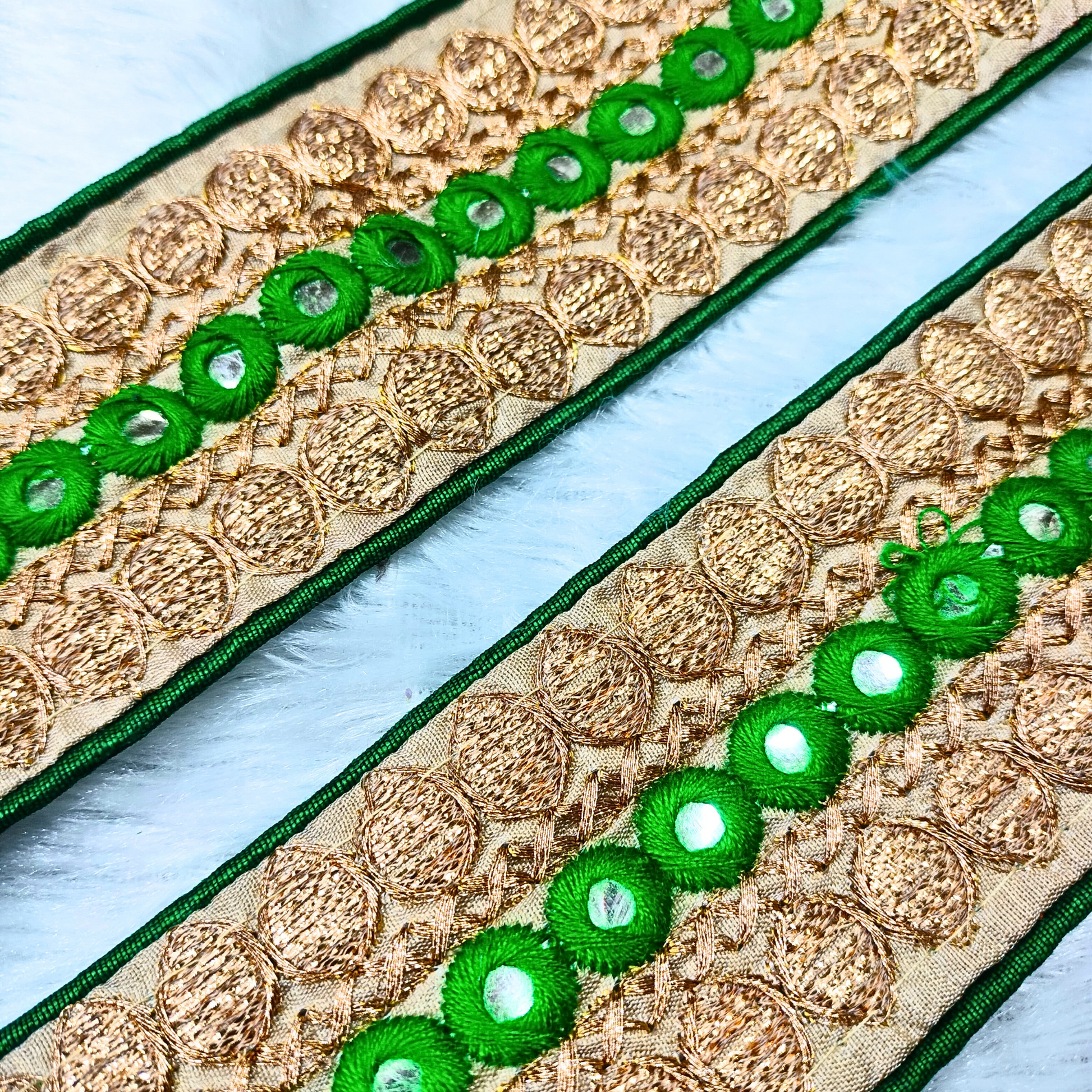 The Fancy Zari and Thread Work Embroidered Border is a beautifully crafted decorative trim, featuring intricate zari (metallic thread) and detailed threadwork embroidery. This combination adds a luxurious and textured finish to any fabric, often used to enhance sarees, lehengas, dupattas, or home decor pieces like cushions and table runners. The zari threads, typically gold or silver, shimmer against the rich color of the base fabric, while the threadwork adds depth and dimension with floral, paisley, or geometric motifs. Perfect for weddings, festive occasions, or special events, this border creates a timeless, elegant look that blends tradition with contemporary style.